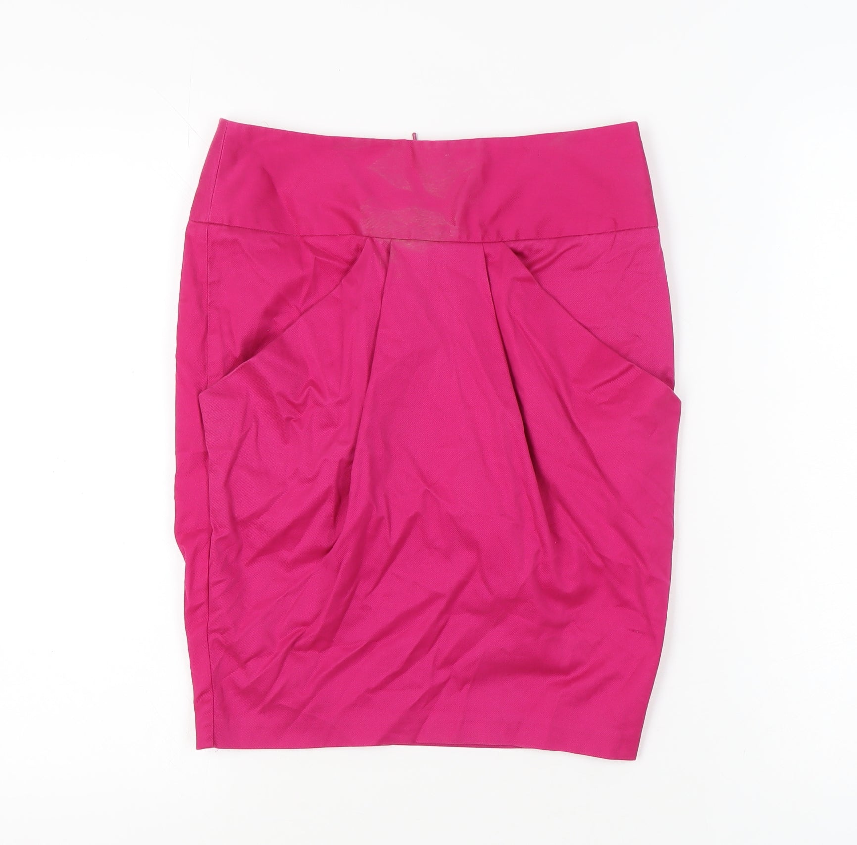 Add a vibrant splash of colour to your wardrobe with this River Island Women's Pink Pencil Skirt. Perfect for those who love bold fashion choices, this skirt offers a vivid pink hue that's sure to turn heads. Designed for women who appreciate style with an edge, its straight and pencil fit creates a sleek silhouette, ideal for both casual outings and more formal events.Crafted to fall beautifully to knee length, this skirt is not only stylish but also offers a flattering fit for various body types. The zip closure ensures a snug, comfortable fit, keeping you feeling secure and confident throughout the day. Despite showing minor wear, this skirt is in excellent condition, making it an ideal option for adding a pop of colour to your ensemble without compromising on quality.Whether you're dressing for a casual day out or planning to make a fashion statement at the office, this skirt will not disappoint. Pair it with a simple blouse and heels for a polished look, or lace-up boots and a jacket for more of an edge. Embrace the opportunity to refresh your wardrobe with this versatile, eye-catching piece that promises to be a favourite in your collection.