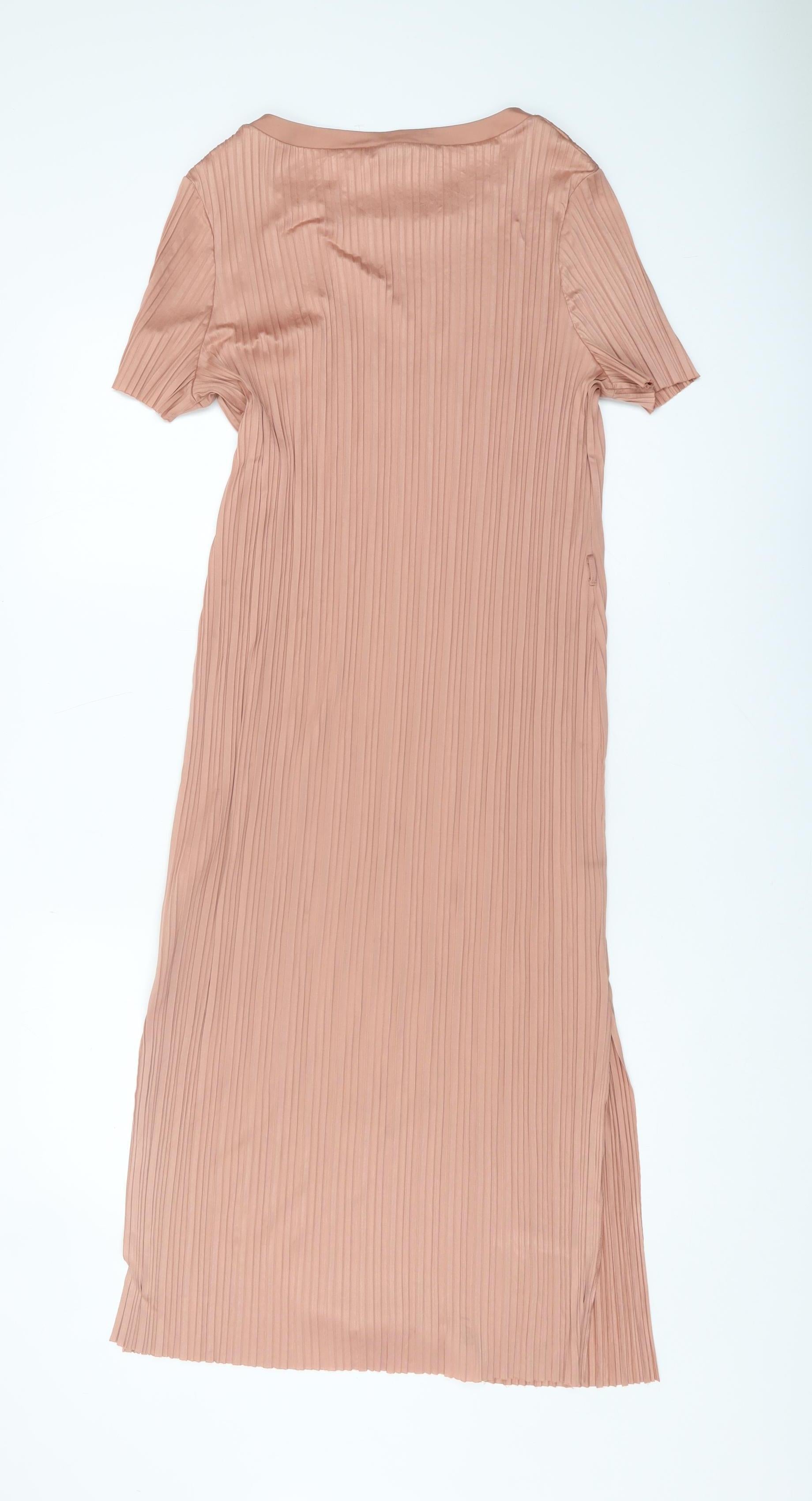 Step into style with this elegant River Island Women's Shift Midi Dress in a delightful pink hue. Crafted with meticulous attention to detail, this dress is designed to offer both comfort and sophistication. The midi length adds a touch of modern flair, making it an ideal choice for casual settings or a relaxed evening out. Its polyester fabric ensures it is lightweight yet durable, offering a soft feel against the skin while maintaining its shape. The dress features a half sleeve and a round neckline, creating a classic and timeless silhouette inclusive of a pullover closure, allowing for easy wear. Opt for this dress in spring, where its airy feel will complement the season's blooms without overshadowing you with excessive detail, as it boasts a plain, no-pattern design. Whether it’s a casual outing or a day-to-day look, this dress has you covered. Available in size 16, it offers a comfortable fit for those seeking a regular size type. Enjoy the subtle elegance and versatile styling options that come with this river-inspired piece. Perfect for ensuring you look and feel great with every wear. Add this River Island Shift Midi Dress to your wardrobe essentials today and experience a blend of comfort and style.