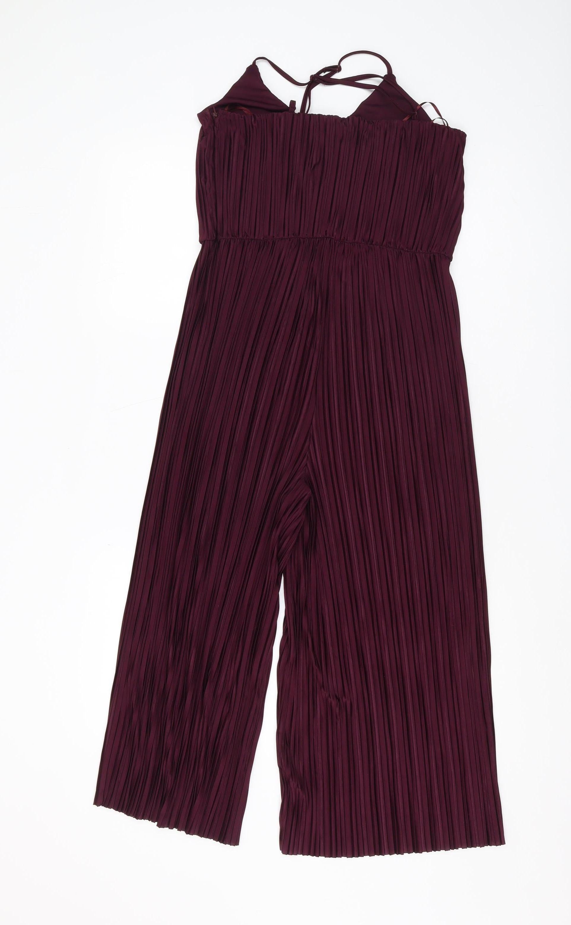Elevate your wardrobe with this stylish River Island jumpsuit, perfect for party and cocktail occasions. Designed for women, this purple one-piece features a flattering V-neckline and sleeveless, wide-leg style that combines elegance with comfort. Made from high-quality polyester in a pleated fabric, it ensures both durability and a chic appearance. The adjustable straps offer a tailored fit, while the convenient zip closure keeps the look sleek and seamless. Ideal for both autumn and spring, this regular fit jumpsuit boasts a modern, minimalist aesthetic suitable for versatile styling options. Pair it with your favourite accessories and step out with confidence in this must-have piece.