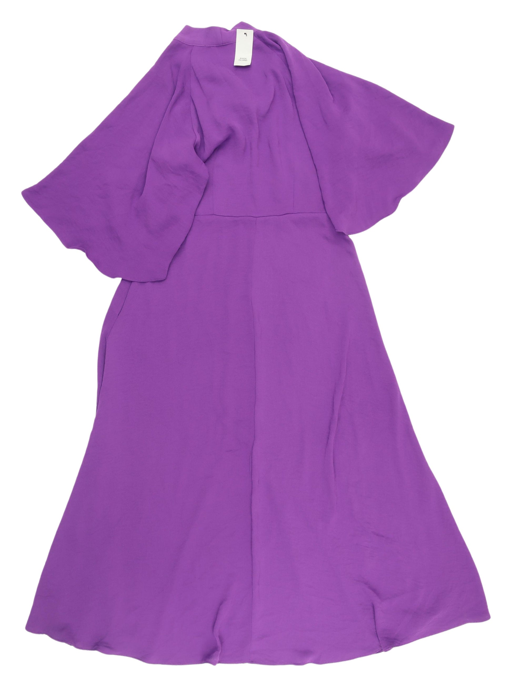 Step out in style with this elegant River Island Women's Midi Dress in a captivating purple hue. Crafted in a flattering fit & flare silhouette, this dress promises to introduce a touch of classic sophistication to your wardrobe. The lightweight and airy woven fabric ensures comfort, making it suitable for a variety of events or a chic day out. With a size 14 fit and designed with short flutter sleeves, this dress accentuates your figure while providing ease of movement. The V-neckline adds a feminine touch, perfect for both casual and party occasions. Made from 100% polyester, it is easy to care for with machine wash capability. Lined for modesty, the dress also supports year-round wearability particularly in the warmer months of spring and summer. The pullover design emphasizes simplicity without sacrificing style. With no intricate patterns or excessive accents, it maintains a minimalist and elegant vibe. This brand new item with tags makes it an excellent choice for someone seeking a fresh addition to their wardrobe. Perfect for a casual outing, a party, or cocktails, this dress is versatile enough to be dressed up or down. Its strong appeal lies in a captivating colour and classic fit, making it a reliable pick for multiple seasons. Secure this River Island Women's Purple Midi Fit & Flare Dress today and enjoy the blend of fashion and comfort that makes every outing a stylish affair.
