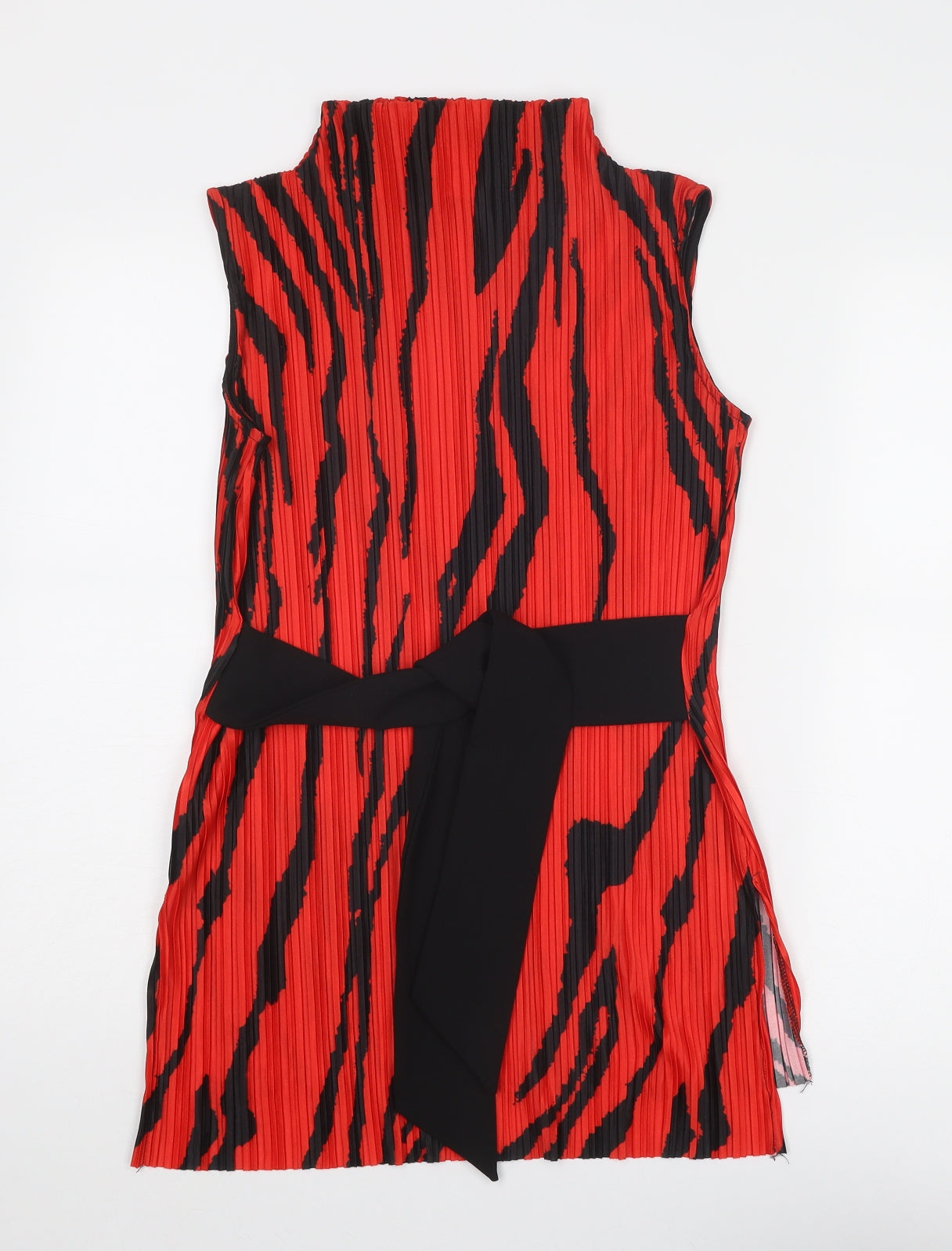 Womens Red Animal Print Polyester Basic Blouse Size 8 High Neck - Plisse