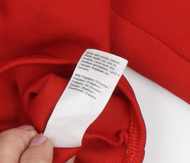 Introducing the chic and versatile River Island Women's Red Bodysuit, perfect for elevating your casual wardrobe. Made with a comfortable blend of 95% Polyester and 5% Elastane, this jersey fabric offers a flexible fit that's ultra-soft against the skin. With its vibrant red hue, this bodysuit adds a pop of colour to any ensemble, making you stand out effortlessly. Designed with a flattering V-neckline and long sleeves, it’s ideal for year-round wear, keeping you stylish through all seasons. The stretch feature provides a sleek silhouette while ensuring maximum comfort throughout the day. Convenient snaps for closure make it easy to wear, and its machine washable feature guarantees easy care. Perfect for casual outings or layering under your favourite outfits, this bodysuit is a must-have addition to any wardrobe filled with trendy staples. Explore the freedom of movement and style with this essential single-piece. Complete your look with a pair of jeans or a skirt, and step into the world with confidence and flair. Don’t miss out on this exquisite piece—buy now to redefine your everyday style.