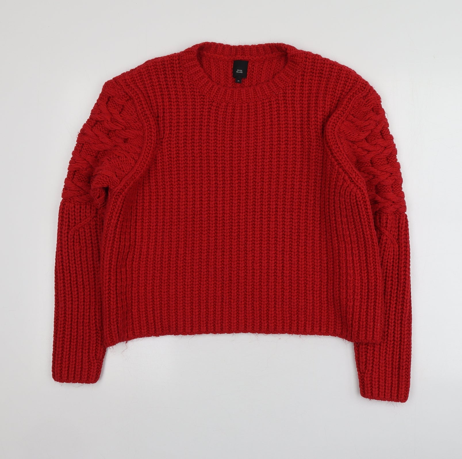 Womens Red Round Neck Acrylic Pullover Jumper Size M