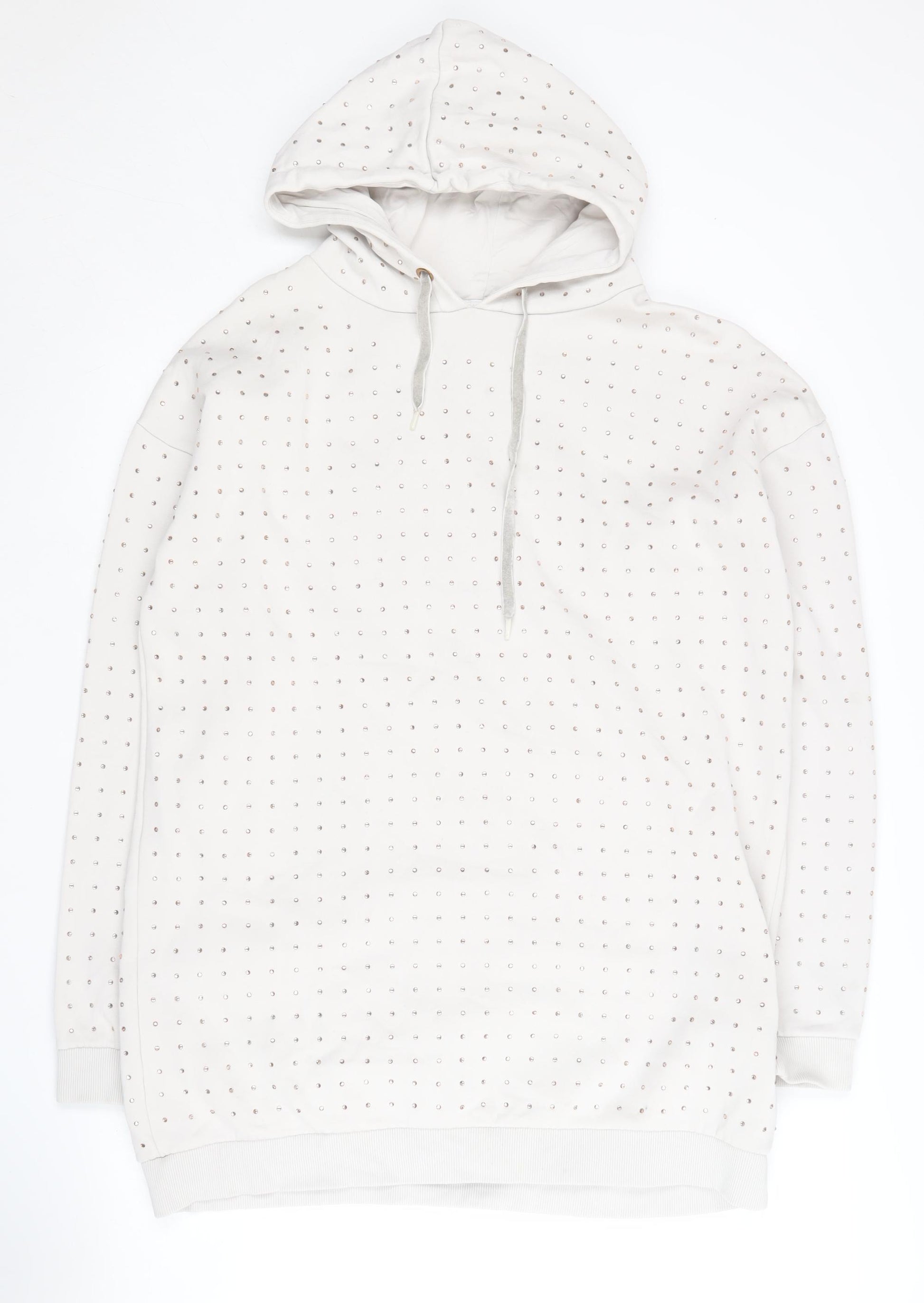 Embrace comfort and style with this stunning River Island women's pullover hoodie. Crafted in a classic white shade adorned with eye-catching studs, this hoodie effortlessly combines a chic aesthetic with everyday functionality. Featuring a hooded design with drawstring closure, this piece is ideal for casual outings or cosy evenings. Made from a soft cotton and polyester blend, it offers breathability and durability for all-seasons wear. The regular fit ensures a flattering silhouette, while the long sleeves provide warmth in cooler climates. Perfect for those seeking a modern twist on a wardrobe staple. This hoodie is machine washable, maintaining convenience alongside style.