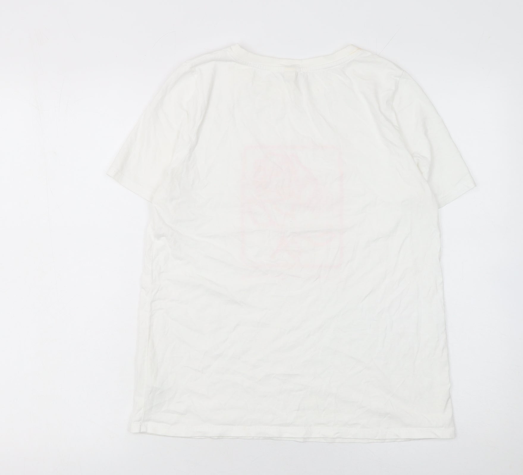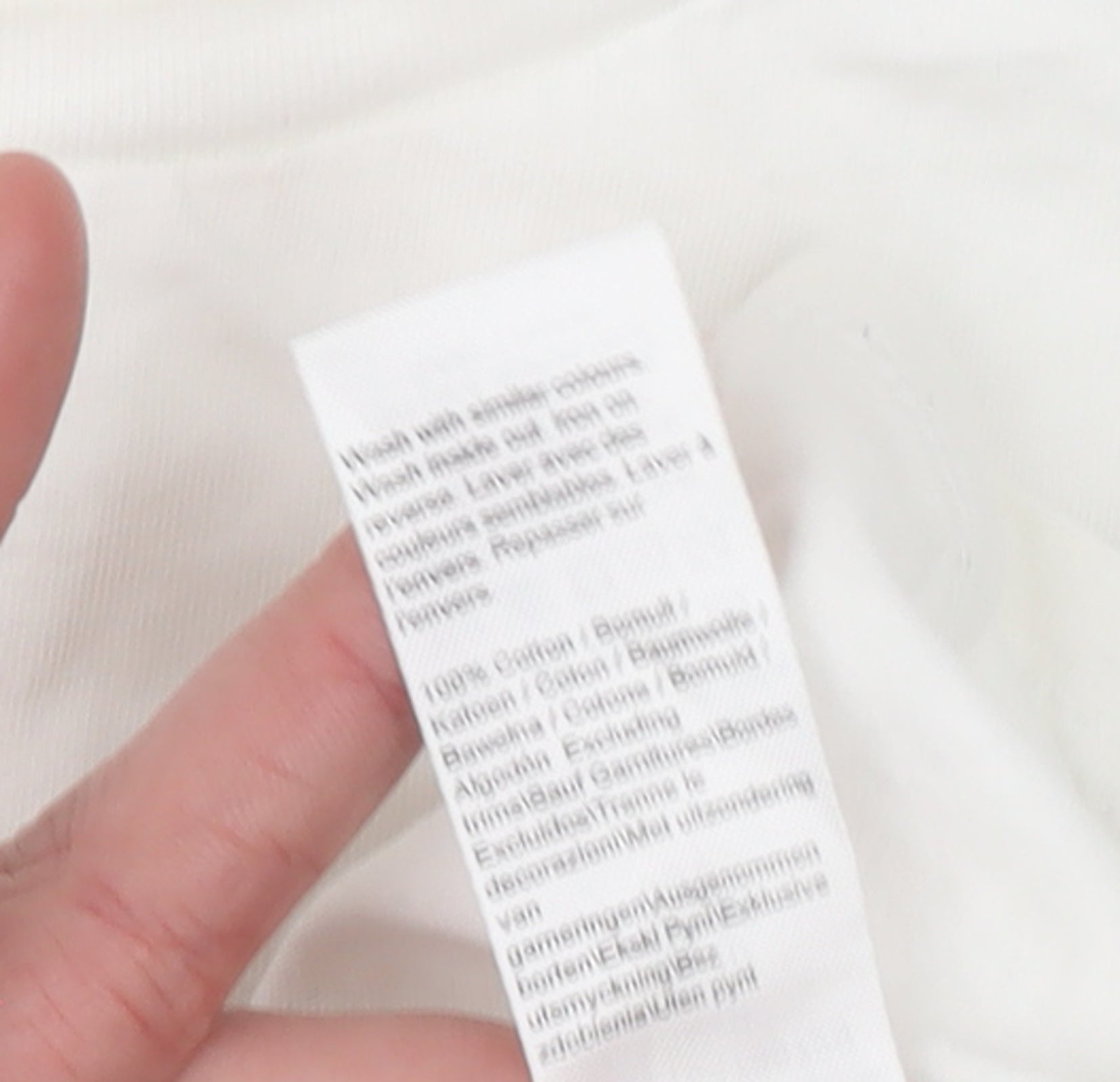 Women's White Floral Embroidered Cotton T-Shirt Size 10