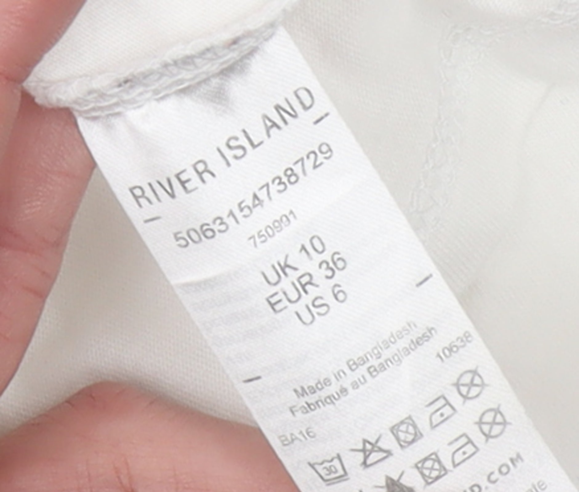Add a touch of effortless charm to your casual wardrobe with this River Island Women's White Floral Embroidered Cotton T-Shirt in size 10. Designed for everyday comfort, this top combines simplicity with a subtle artistic flair. Crafted from 100% cotton, the soft jersey fabric ensures breathability and a lightweight feel, perfect for wearing during warmer days or layering across seasons. The classic crew neckline and short sleeves create a flattering, relaxed silhouette that suits all body types. The standout feature of this T-shirt is its elegant red embroidered floral motif on the front, paired with the inspirational wording 'forever a dreamer'. The embroidery adds texture and a pop of colour against the clean white background, reflecting a chic yet laid-back style. The material’s natural comfort makes it ideal for both relaxed weekends and casual outings. Whether teamed with jeans, shorts, or a skirt, it brings easy sophistication to your look. This garment is machine washable, making it simple to care for. While lightly worn, it remains in very good condition, with only a faint discolouration near the collar that does not detract from its overall appeal. Perfect for spring and summer, this River Island T-shirt embodies casual feminine energy, pairing comfort with expressive detail. Ideal for women who love versatile wardrobe staples that balance comfort and creativity, this top would make a lovely everyday fashion choice. Combine it with a denim jacket for an easy off-duty look or pair it with tailored trousers for a modern contrast. It’s a lightweight and breathable essential for effortless seasonal styling.