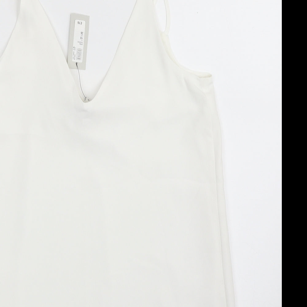 Womens White Polyester Camisole Blouse Size 10 V-Neck - Layered