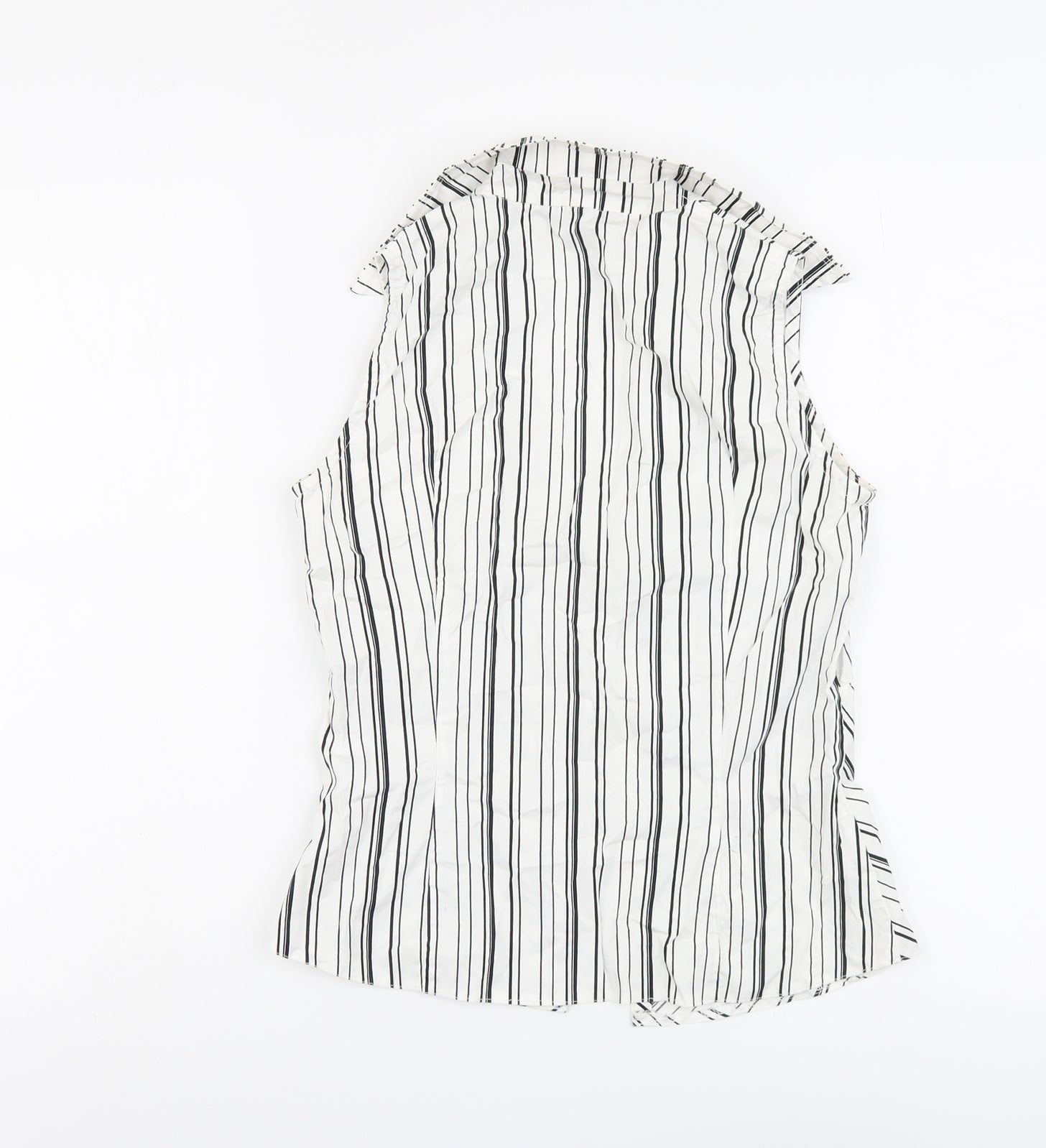Womens White Striped Cotton Basic Button-Up Size 10 Collared