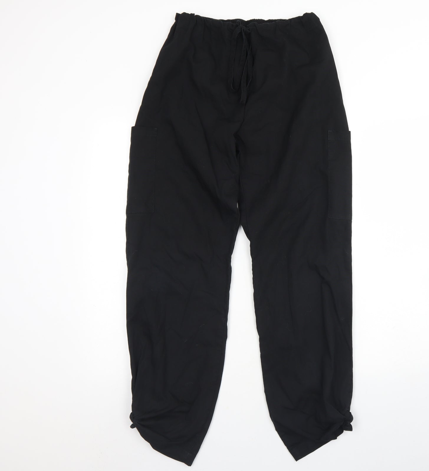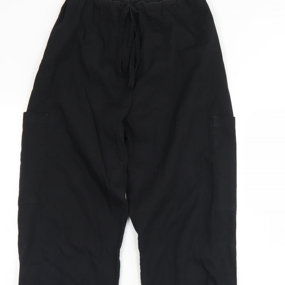 Womens Black Cotton Cargo Trousers Size S L30 in Regular Drawstring