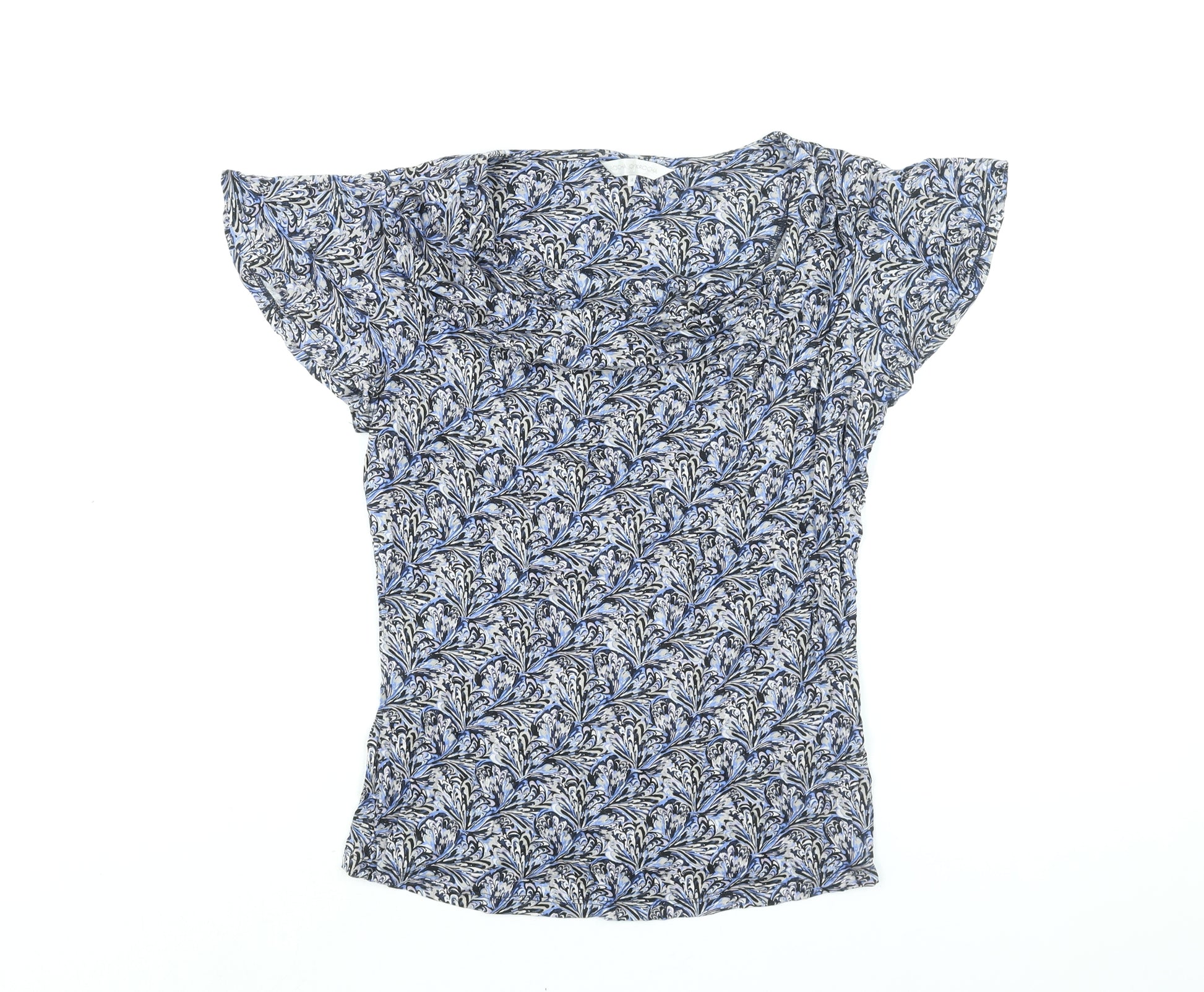 Womens Blue Geometric Viscose Basic Blouse Size 14 Collared