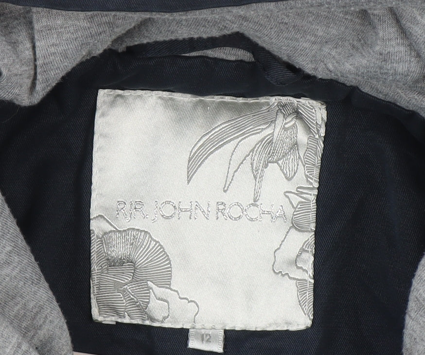 This RJR John Rocha women's jacket combines timeless British design with functional detailing, offering a versatile outerwear piece suited to many occasions. Crafted from a durable blend of 57% cotton, 33% polyester, and 10% nylon, the shell provides a smooth, refined feel while maintaining strength and structure. The soft cotton and polyester-lined interior adds comfort, making it ideal for cooler seasons such as autumn, spring, and winter. Styled in a deep blue colour, this mid-length jacket features full button fastening with a concealed zip for extra protection against wind and light rain. Its hooded design gives an added layer of practicality for unpredictable weather, while the twin front flap pockets offer both style and functionality for carrying essentials. The adjustable cuffs and neat cut ensure a flattering regular fit, perfect for layering over knitwear or lighter tops. The jacket’s clean silhouette, absence of pattern, and understated button accents lend it a smart yet casual appeal, ideal for travel, everyday wear, or commuting. The twill fabric construction enhances durability and texture, reflecting John Rocha’s signature craftsmanship. Though pre-owned, it remains in excellent condition with minimal signs of use, retaining its quality and classic charm. Machine washable for easy care, it promises convenience alongside its stylish design. A dependable staple for transitional weather, this RJR John Rocha piece pairs effortlessly with jeans, trousers, or dresses for a polished and comfortable look suitable for smart-casual or off-duty days alike. Find confidence and sophistication in this elegant women’s blue hooded coat, perfect for versatile wardrobe styling.