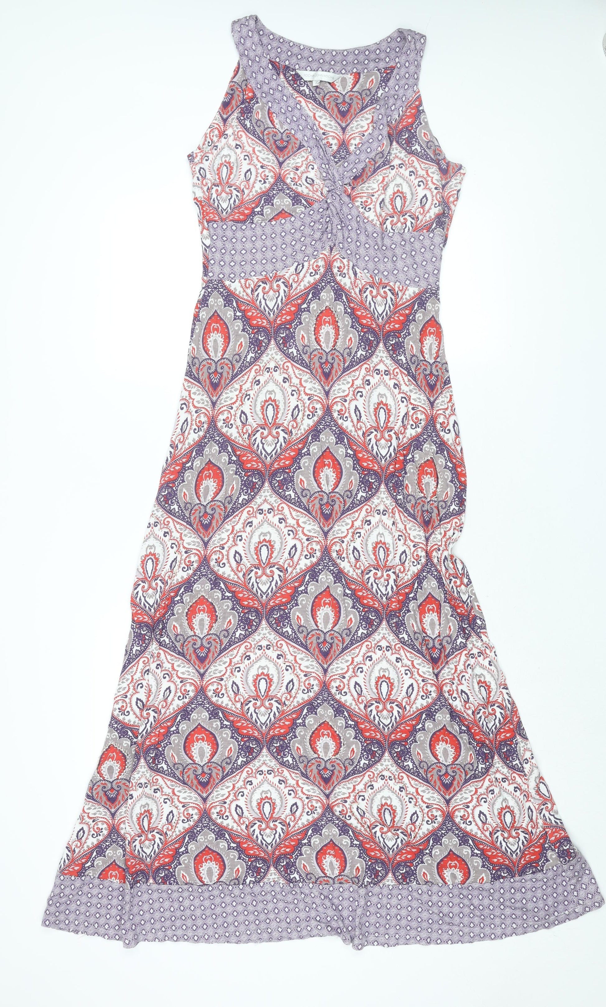 Womens Multicoloured Geometric Viscose Maxi Size 12 V-Neck Pullover