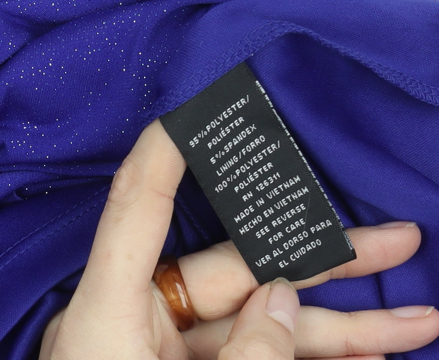 This striking RN Studio by Ronni Nicole sheath dress in a captivating blue hue is perfect for party and cocktail occasions. Designed for women, this dress flaunts a knee-length cut, sleeveless design, and a flattering V-neckline. The elegant ruched detailing accentuates the silhouette, ensuring you look sophisticated and chic. Made from a comfortable knit fabric blend of polyester and spandex, it offers a graceful fit while allowing easy movement. The glitter accents add a touch of sparkle, making this ideal for evening events. Suitable for autumn and winter seasons, this dress is versatile and eye-catching. With an excellent condition and no visible flaws, it's a fantastic addition to your wardrobe.