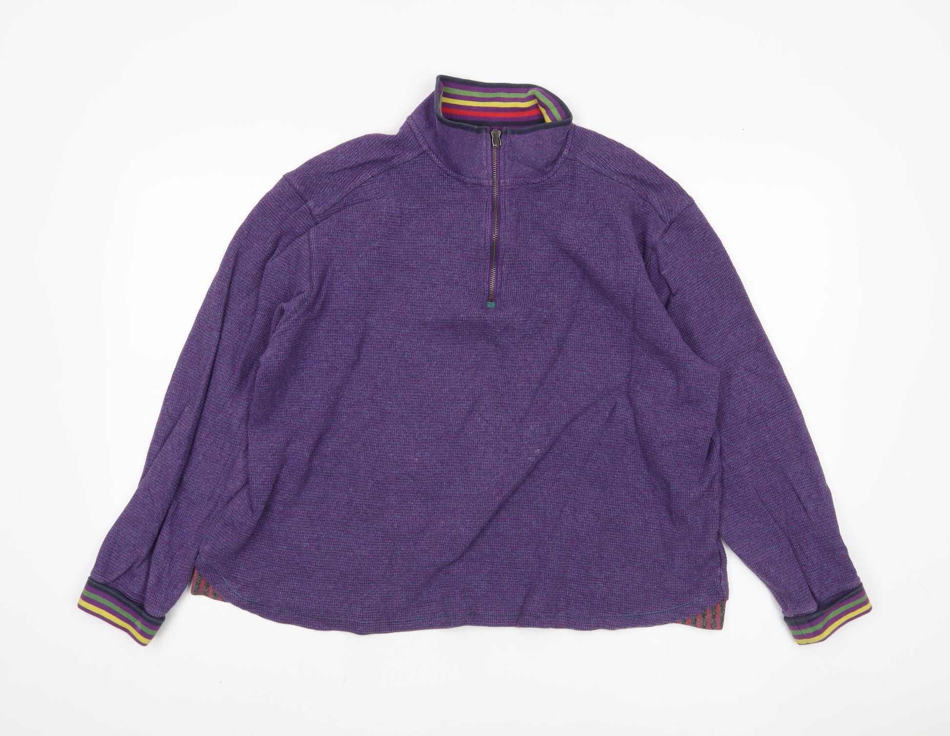 Step into style with the vibrant Robert Graham Purple Pullover Sweatshirt for Unisex Adults. Crafted from pure cotton, this knit fabric creation combines comfort with breathability, making it ideal for the colder seasons of Autumn and Winter. The mock neck and 1/4 zip closure add a touch of casual elegance, while the embroidered accents and zip details provide a distinct and fashionable look. Designed in a regular fit with a long sleeve raglan design, this sweatshirt offers ease of movement, perfect for everyday casual wear. Machine washable for your convenience, this piece is in excellent condition, showing minimal signs of wear. Stand out from the crowd with this unisex sweatshirt, adding a pop of colour to your wardrobe. Whether you're lounging at home or out and about, this Robert Graham sweatshirt will become a staple in your collection.