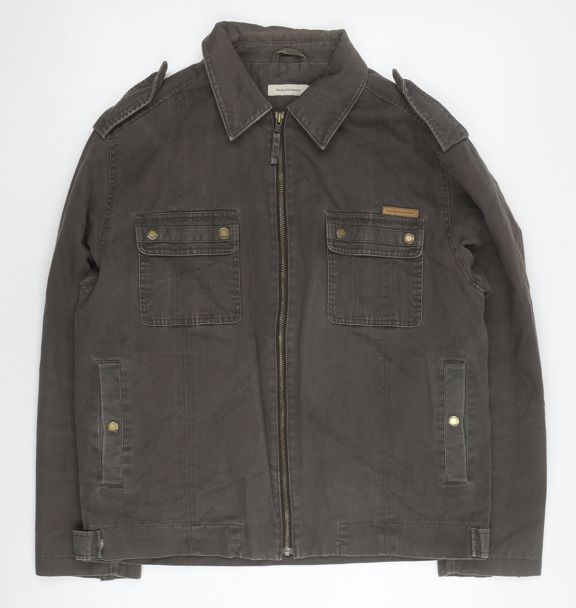 Step out in style with this Rocha John Rocha military jacket, perfect for any casual occasion. Designed for men who appreciate a classic fit, this jacket is crafted from 100% cotton, ensuring both comfort and durability. Its mid-length cut complements its practical features, including a full zip closure and button accents. Ideal for autumn and spring, it provides a versatile addition to your wardrobe. Whether you're heading to a casual event or just navigating through your day, this jacket promises to keep you looking sharp. The stand-up collar adds a touch of sophistication, while the grey colour offers a neutral palette that pairs effortlessly with any outfit. Despite being in excellent condition, the fabric is slightly wrinkled, reflecting its authenticity and charm. Machine washable for easy care, this jacket is a hassle-free, stylish option for the modern man. Elevate your outerwear collection with this essential piece, embodying a balance of function and fashion.