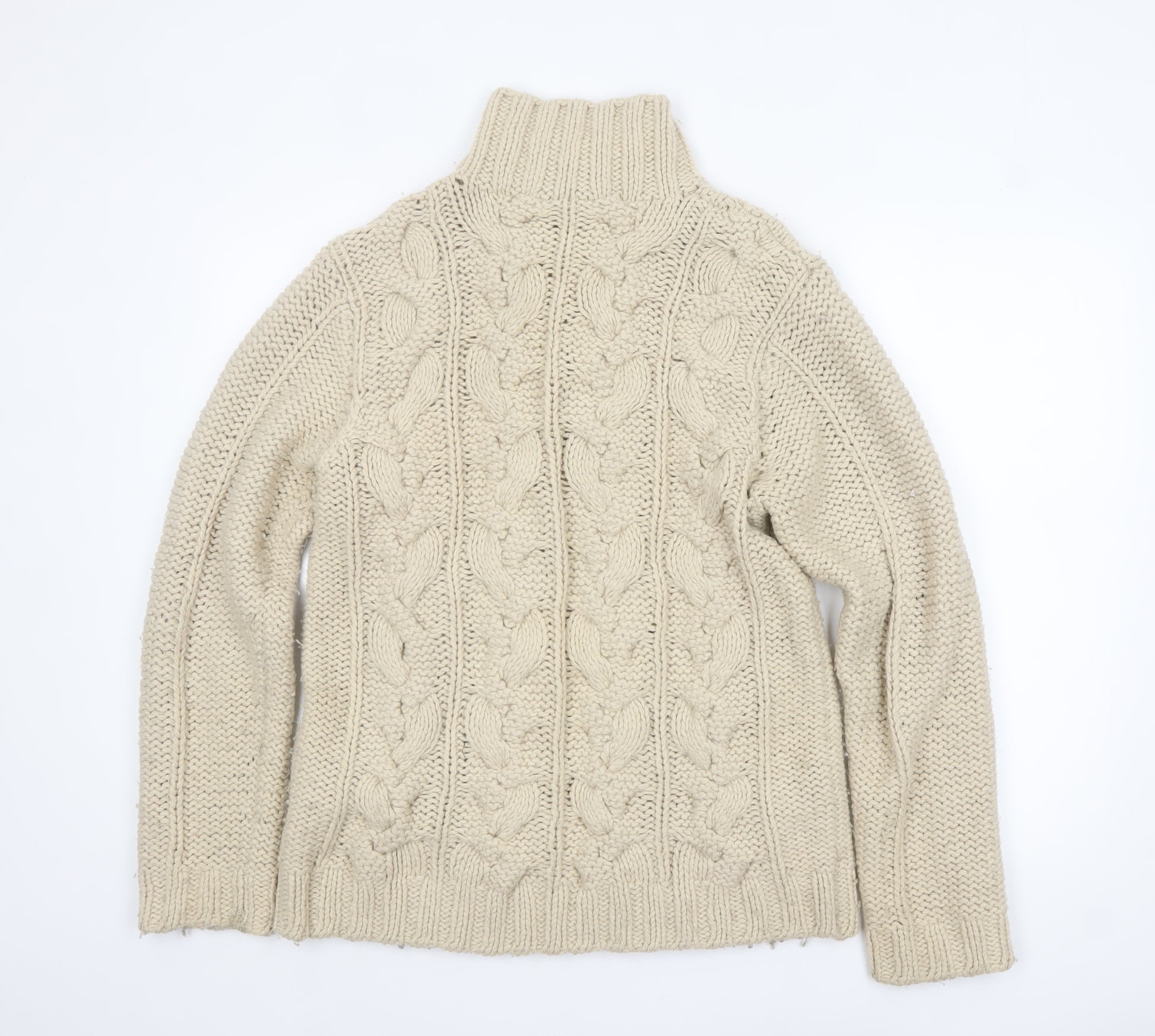 Men's Beige Cable Knit Wool Blend Pullover Jumper L
