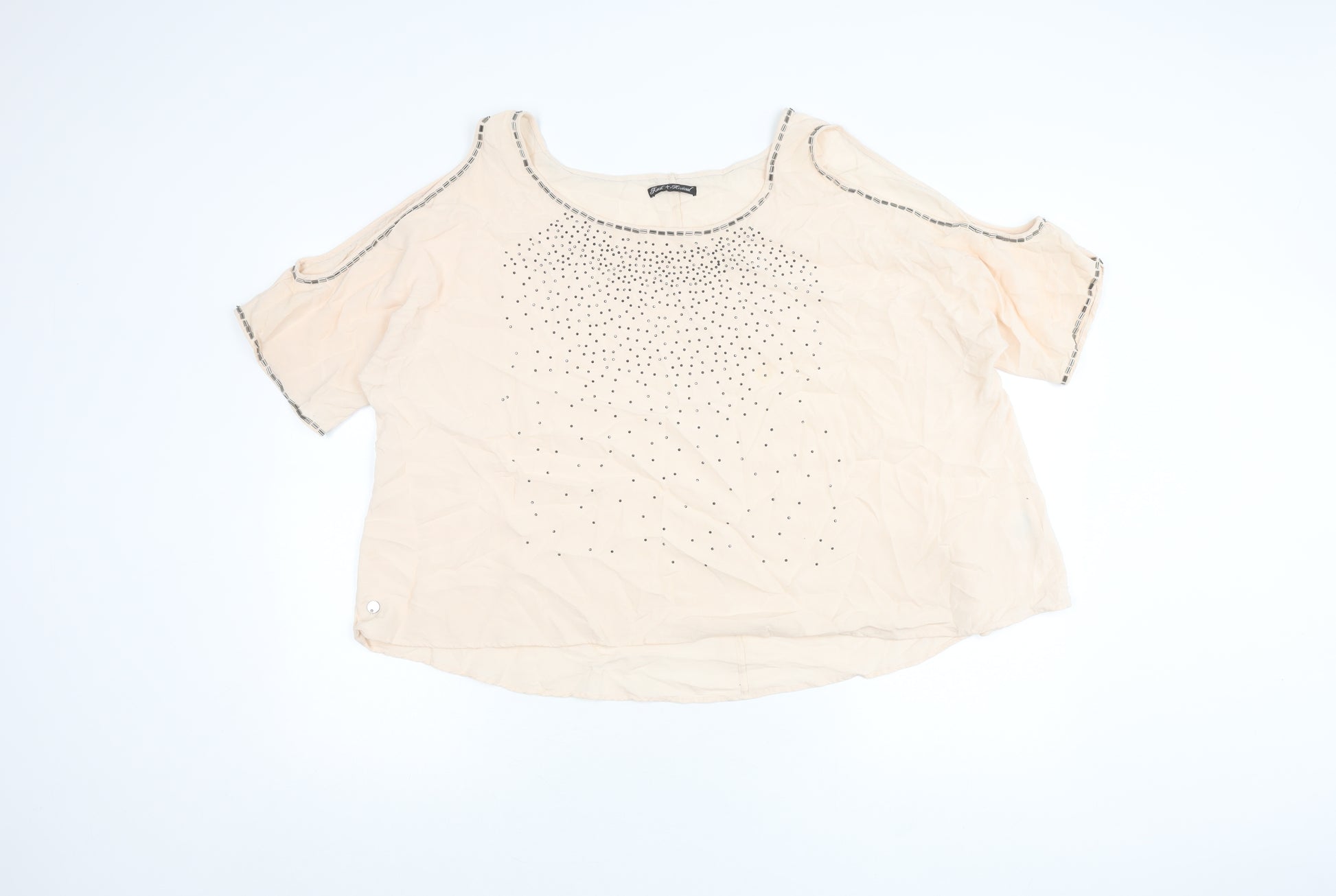 Add a touch of flair to your wardrobe with this exquisite beige top from Rock & Revival. Crafted from 100% viscose, this top offers a smooth and comfortable fit, perfect for casual outings. The studded accents give it a touch of shine, while the cold shoulder sleeves and scoop neckline create a modern, trendy look. Ideal for women who appreciate a blend of style and comfort, this top is a versatile addition to any closet. Pair it with your favourite jeans or a skirt for a laid-back, chic ensemble.