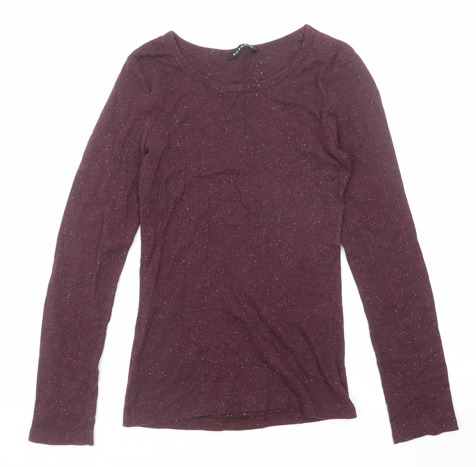Womens Purple Polyester Basic T-Shirt Size S Boat Neck
