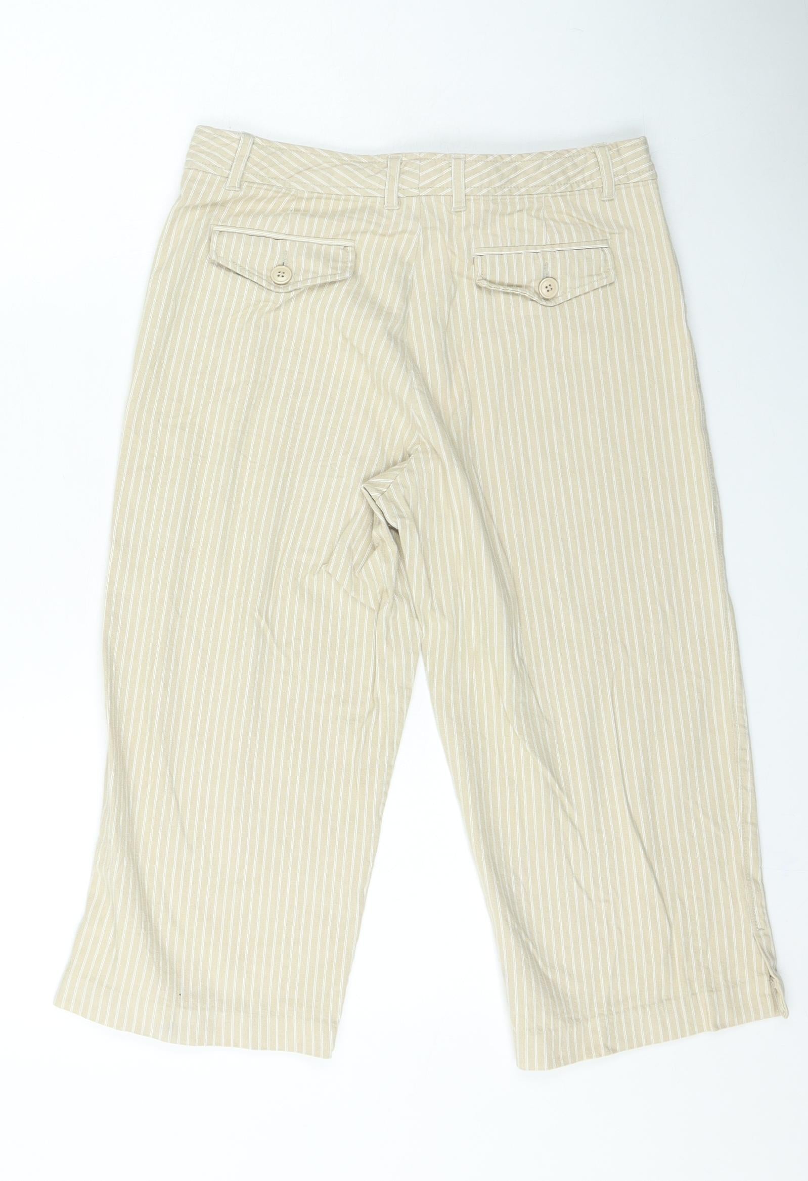 Womens Beige Striped Cotton Cropped Trousers Size 12 L20 in Regular Zip