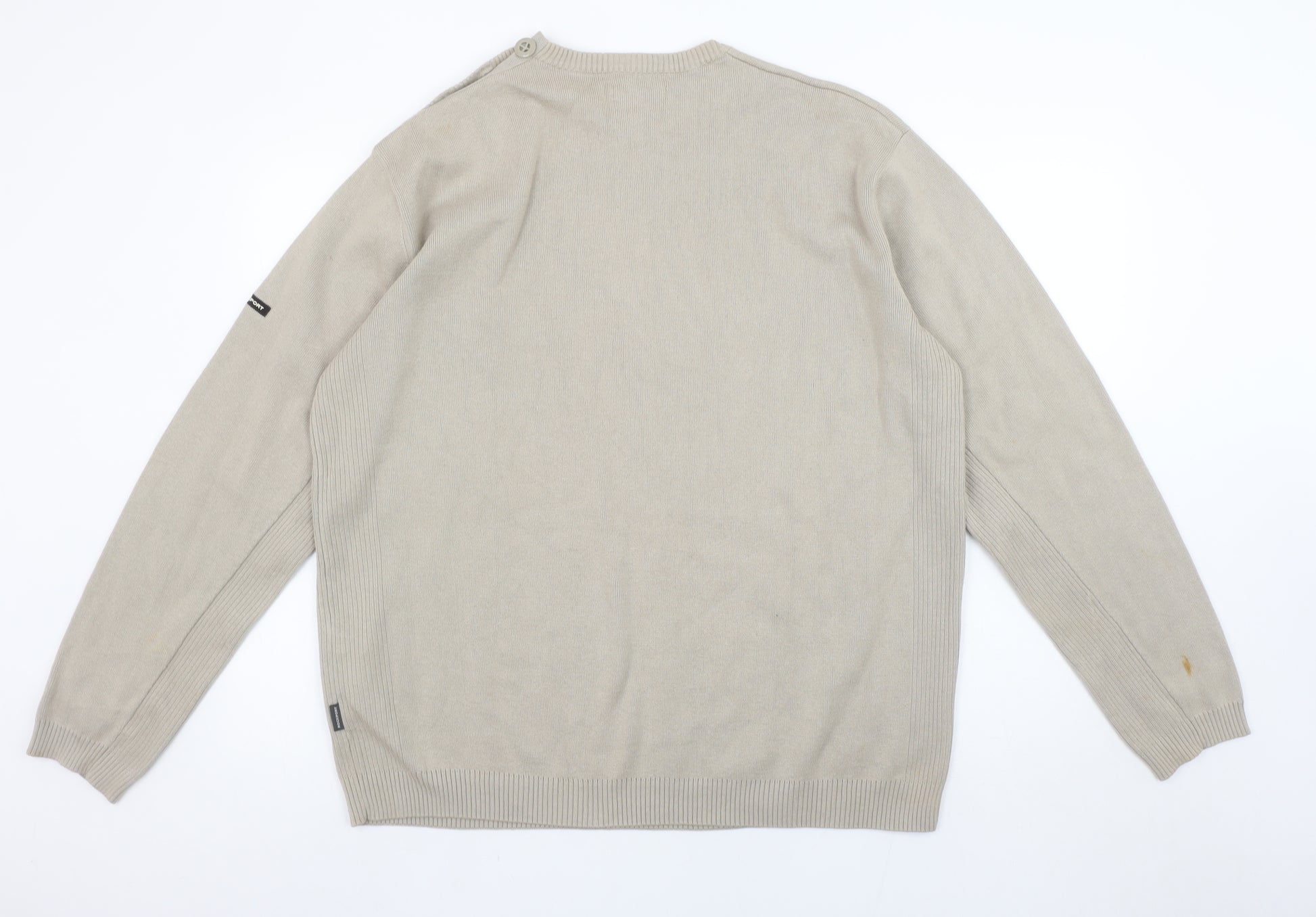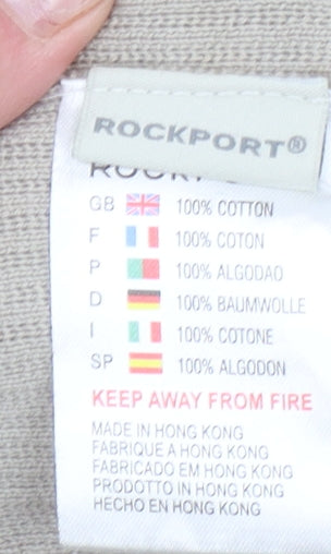This Rockport men’s beige jumper offers timeless comfort and classic styling for the cooler months. Expertly crafted from 100% cotton, it provides a soft, breathable knit that’s perfect for everyday wear. Designed with a clean crew neckline and long sleeves, it ensures a versatile and polished look suited for casual layering or smart-casual dressing. Button accents at the shoulder add subtle detail without compromising simplicity. The beige tone delivers understated sophistication and pairs effortlessly with jeans, chinos, or layered over a shirt for a more refined appearance. The cotton fabric ensures comfort and durability, ideal for cooler days in autumn, spring, or winter. This lightweight yet warm jumper works well as a wardrobe staple for those seeking practicality and effortless style. Signs of light wear are present, including a few small stains on the sleeve and hem, but the overall condition remains good, with the garment retaining its structure and quality. Easy to care for, this machine washable piece is suitable for relaxed day-to-day use. Whether worn for casual weekends, workwear layering, or travel comfort, the Rockport beige cotton jumper brings together comfort and functionality. Its versatile design is simple yet sophisticated, making it an excellent addition to any wardrobe for effortless styling across seasons. Perfect for men who appreciate premium materials and understated design, this Rockport jumper combines quality craftsmanship with minimalist appeal. Add this reliable pullover to your wardrobe for a comfortable, breathable fit that transitions seamlessly between smart and casual occasions.