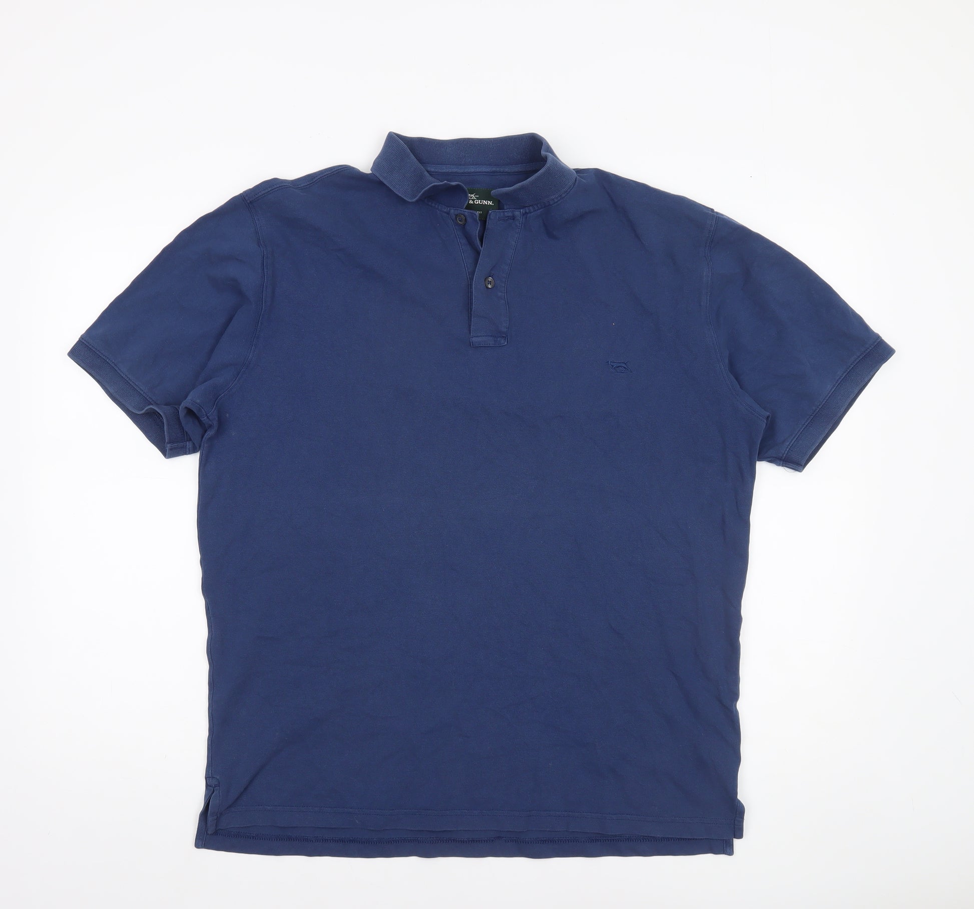 Maine New England Men's Blue Cotton Tailored Fit Polo Shirt Size L