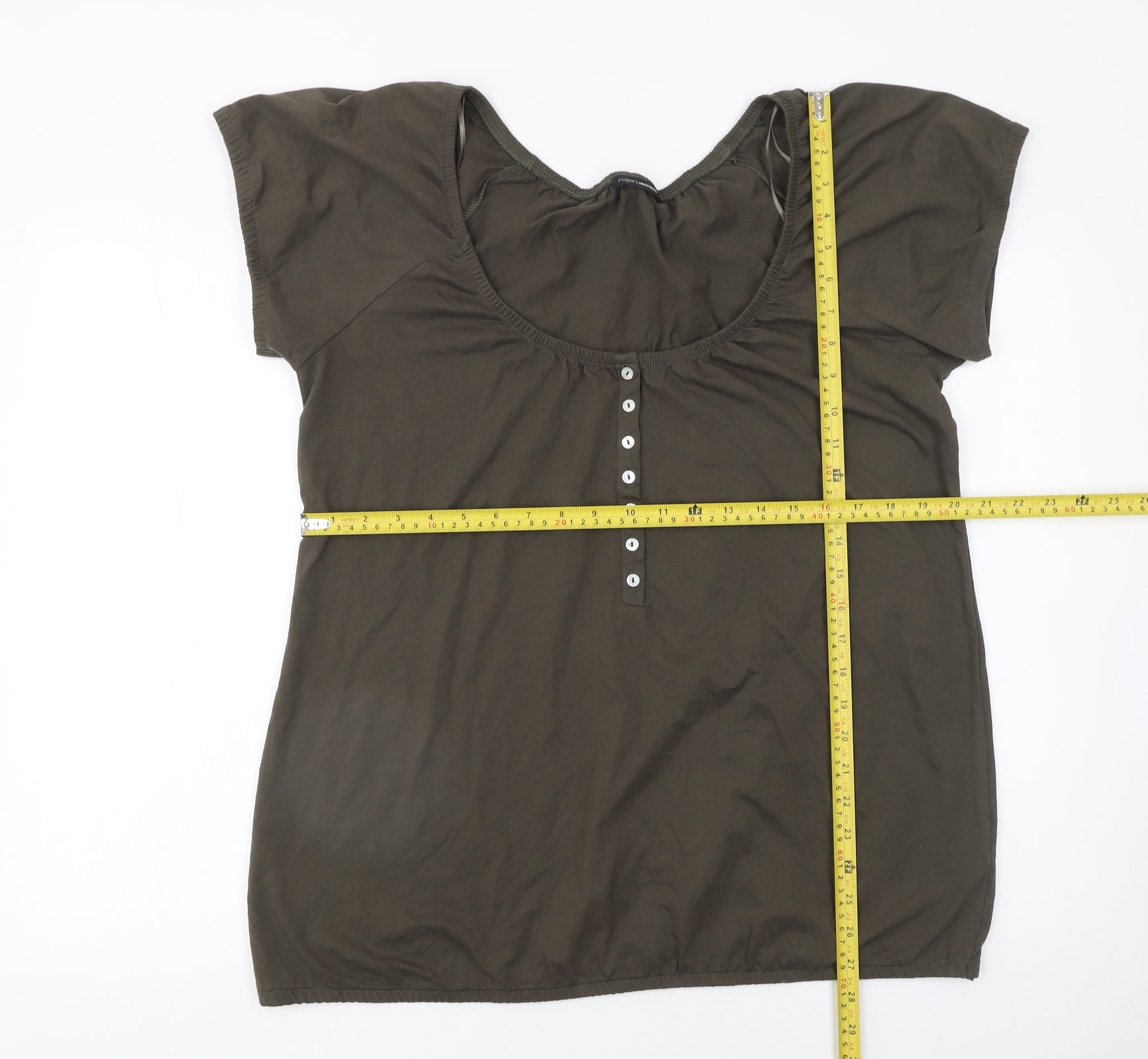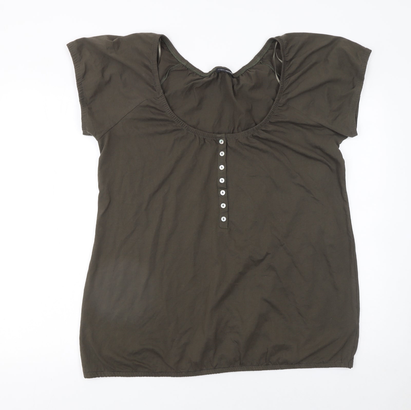Women Khaki Short Sleeve Henley T-Shirt Size 20 100% Cotton