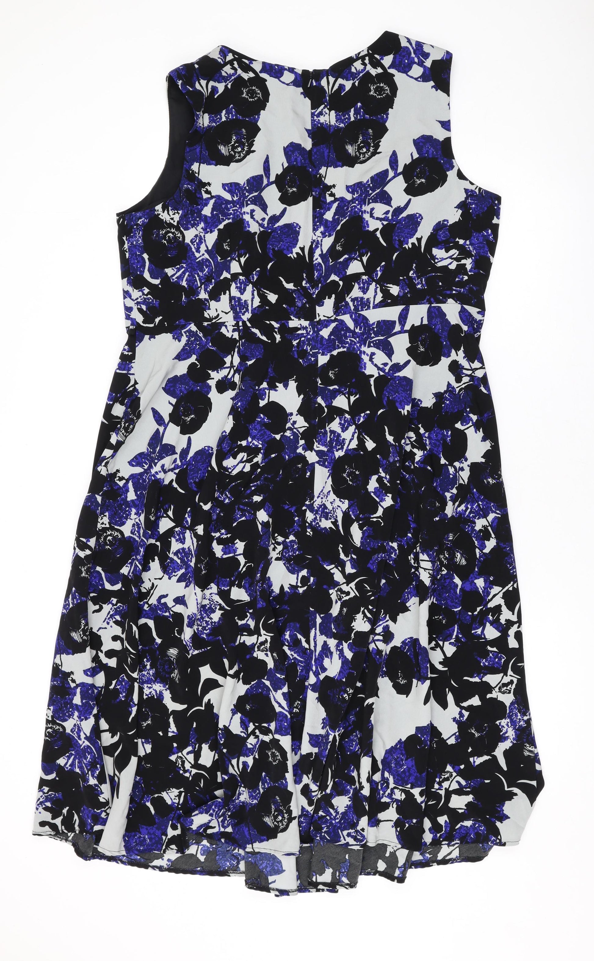 Womens Blue Floral Polyester A-Line Size 20 Round Neck Zip