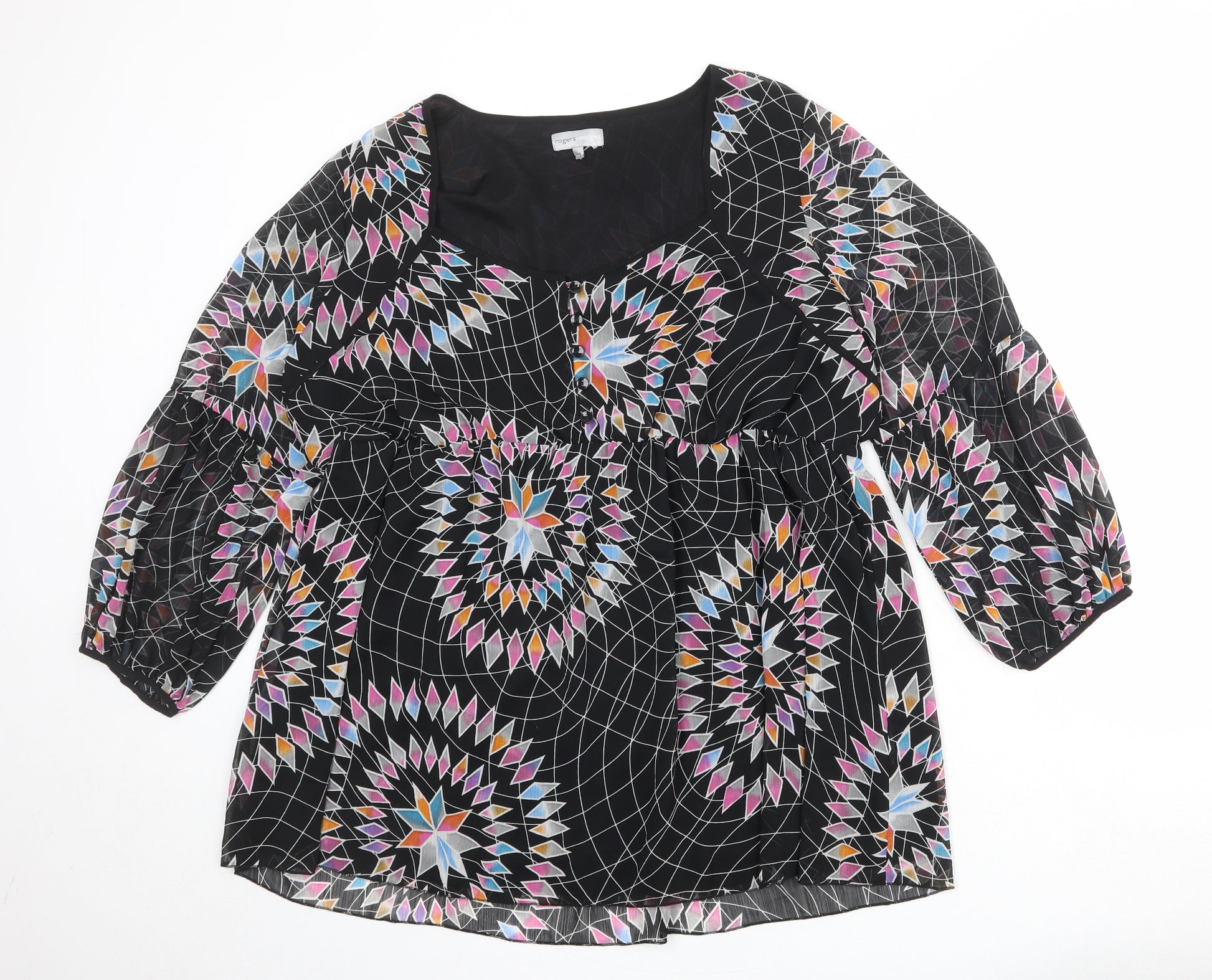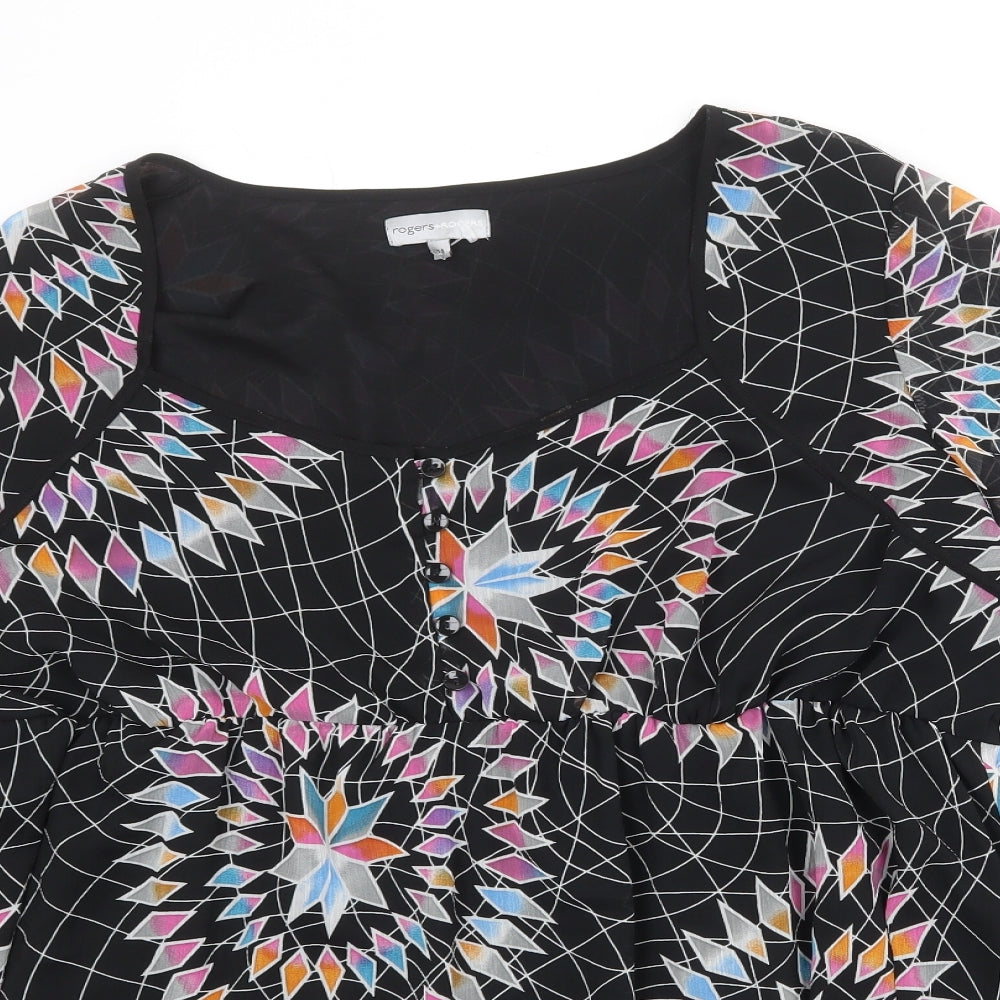 Womens Black Geometric Polyester Basic Blouse Size 24 Square Neck