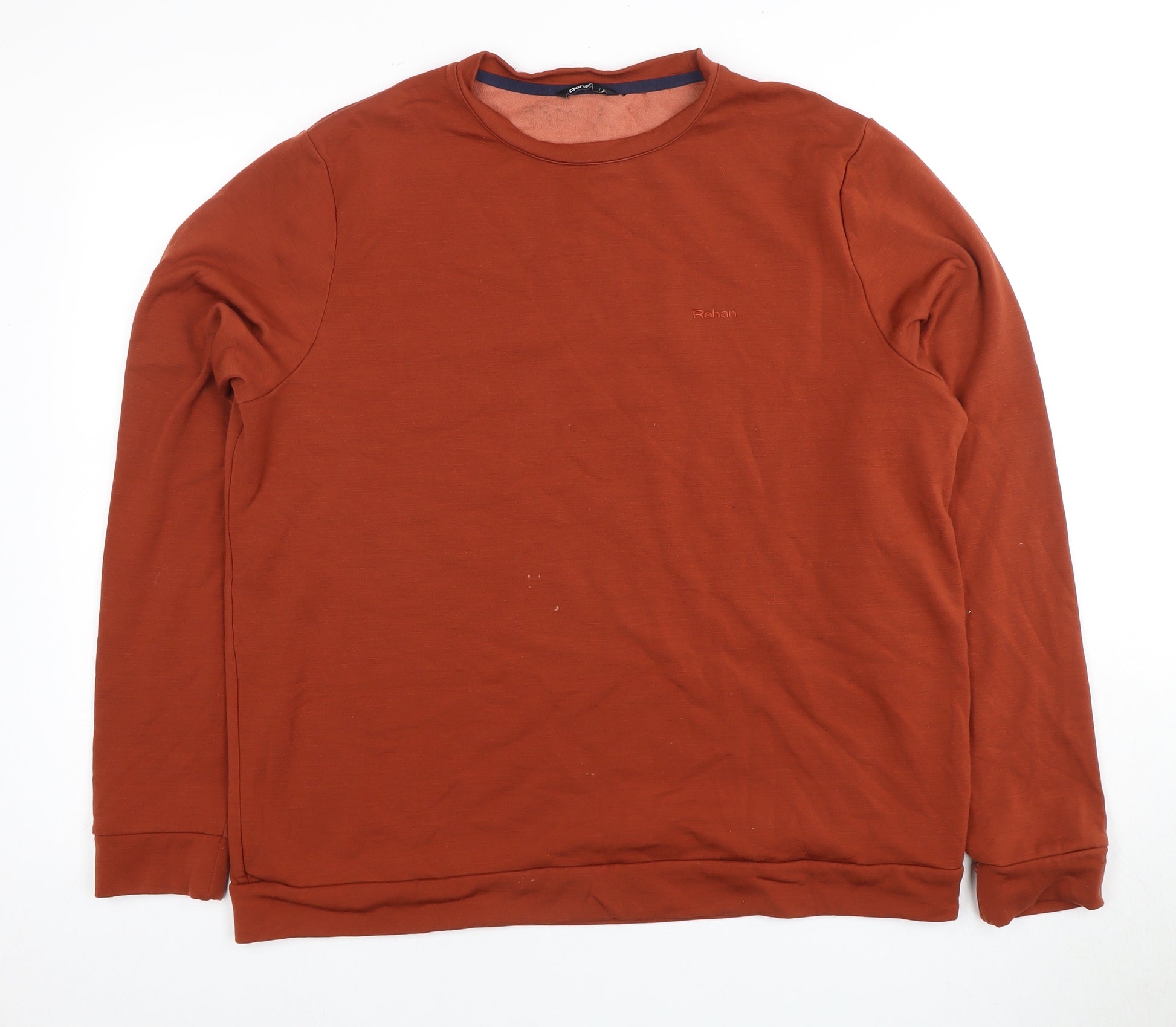 Explore comfort and style with this Rohan pullover sweatshirt. Crafted for men, this brown sweatshirt in size L is designed for those chilly autumn and winter days. Its long sleeves and polyester blend material provide both warmth and flexibility, while the crew neck offers a classic look. Made with a durable combination of polyester, merino wool, and elastane, this pullover ensures a comfortable fit while maintaining a sophisticated appearance. Ideal for layering or wearing solo, its subtle design and no-pattern finish make it versatile for any wardrobe. Whether you're heading out for a casual day or need something cozy, this sweatshirt covers all bases. The slight pilling on the fabric is barely noticeable, keeping it in excellent condition for your wear. Elevate your casual ensemble with this essential piece.
