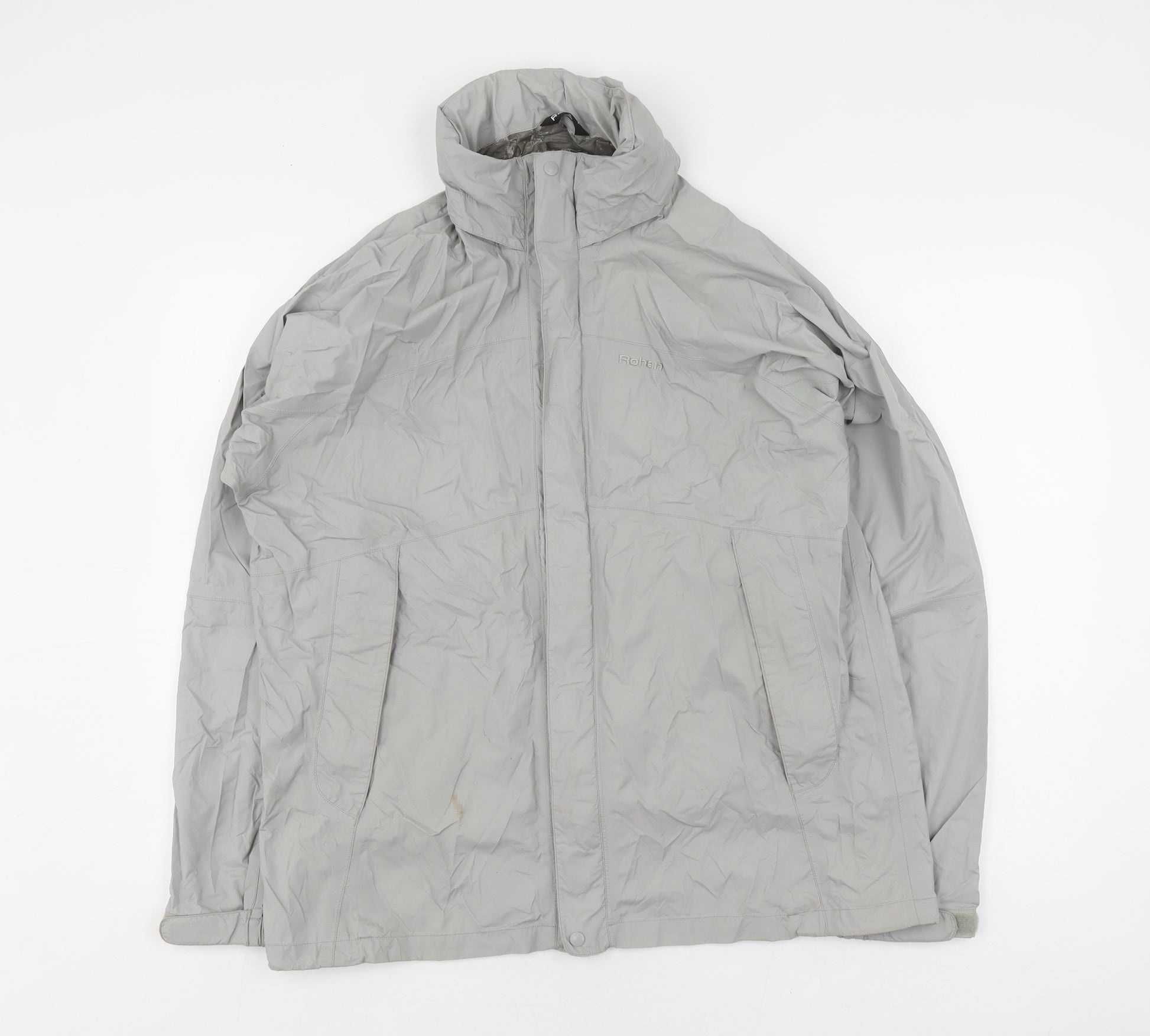 Discover the ultimate in outdoor apparel with this Rohan men's grey waterproof jacket. Designed to tackle the unpredictable British weather, this medium-sized jacket is crafted with 100% polyamide and features a durable polyurethane hydrophilic coating, ensuring permanent water repellency. Its understated grey hue provides a versatile look, perfect for casual outings or serious outdoor adventures. The jacket features multiple pockets for practicality, allowing you to keep essentials at hand. With a focus on comfort, it is designed for the active man, providing breathability and water resistance. Despite some light marks, it remains in excellent condition, ready for its next adventure. Perfect for hiking, trekking, or everyday wear, this jacket not only protects but also enhances your style. Embrace functionality and elegance with Rohan's trusted quality and design.