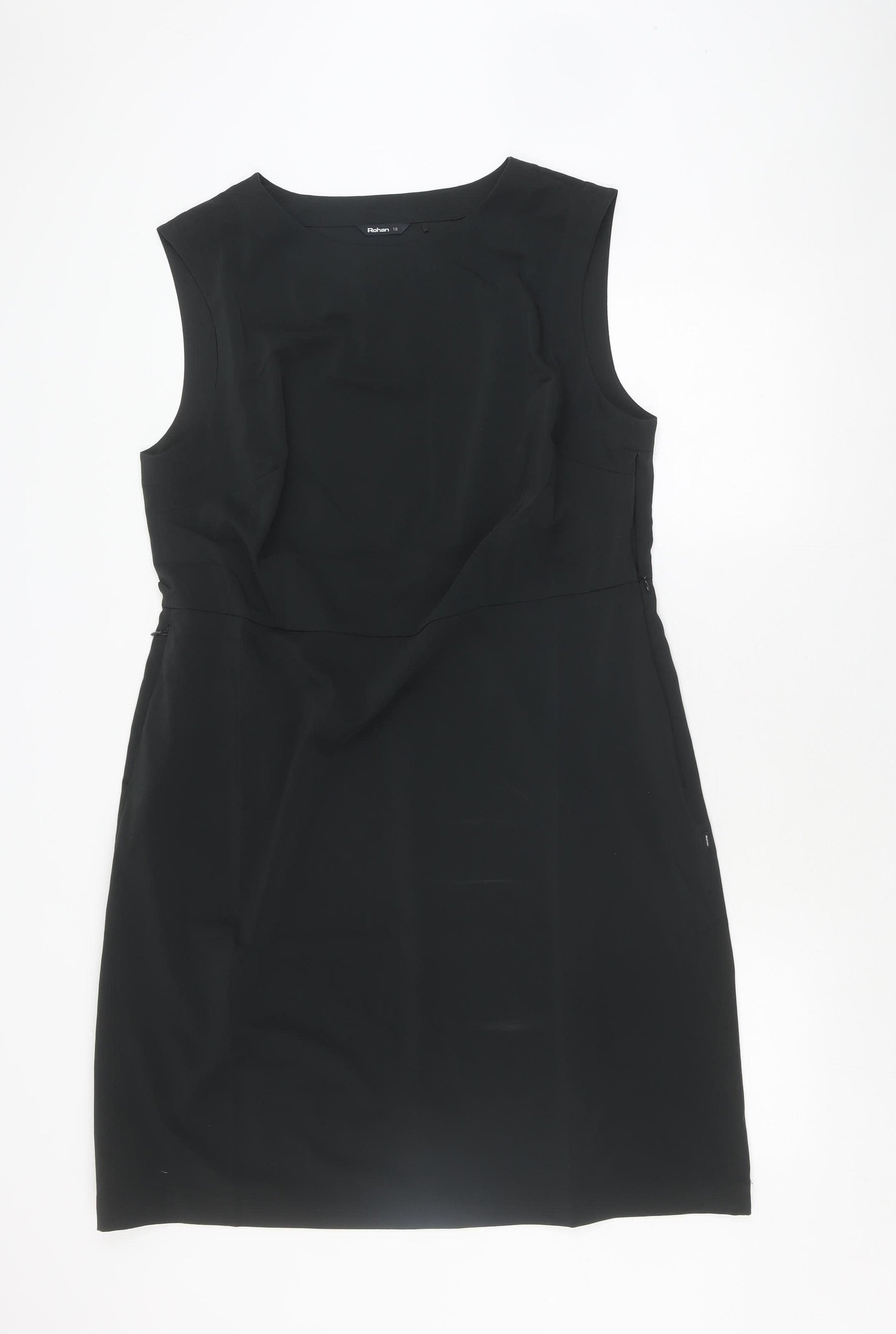 Elevate your wardrobe with this chic black knee-length sheath dress from Rohan, perfect for both work and casual settings. Crafted with a focus on style and comfort, this dress features a flattering boat neckline and a slimming silhouette that complements all body types. Made from a durable woven polyester blend, it offers lightweight wearability across all four seasons. The sleeveless design with strappy sleeves allows for versatile layering, making it an excellent choice for business meetings or casual outings. Enjoy the convenience of a zip closure and machine washable care for easy everyday wear. With a classic theme and neutral black shade, it serves as a staple piece for your wardrobe, aligning perfectly with your busy lifestyle.