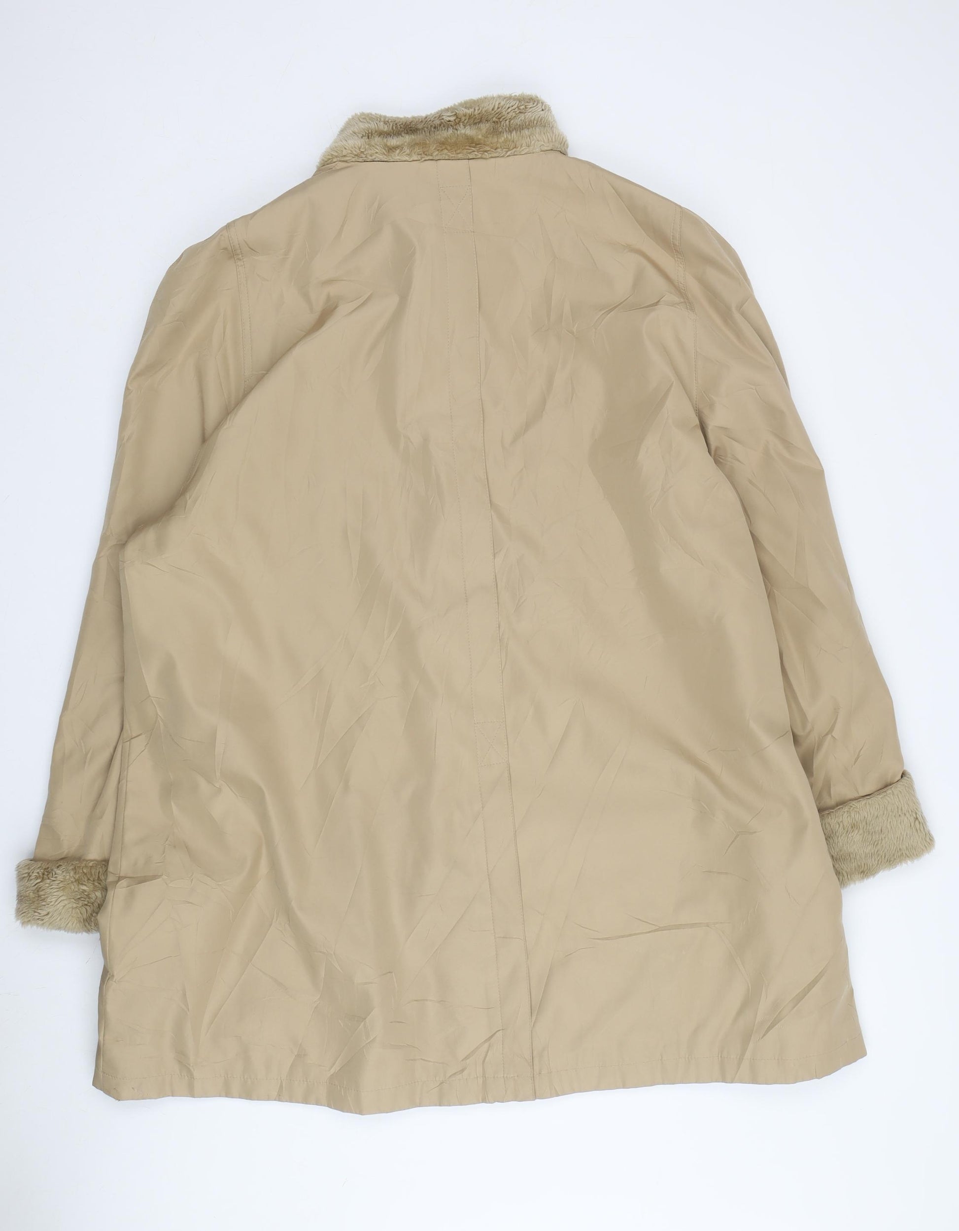 Add a touch of elegance to your winter wardrobe with this Roman Originals women's coat in a rich beige hue. Tailored for a perfect fit, this XL coat is crafted from high-quality polyester, offering optimal warmth for both autumn and winter. The mid-length style, combined with a classic overcoat design, makes it a versatile choice for casual occasions. Enjoy the luxurious feel of a fur trim accent that elevates the overall appearance. With a zip closure and convenient lined feature, this coat ensures both comfort and practicality. Its long sleeves provide full coverage, while the regular fit complements various body types. Whether you're dressing up or down, this timeless piece will seamlessly blend with your outfit choices. Ideal for women seeking style and comfort, the coat is machine washable for easy care, designed to endure the season's wear. Don’t miss the opportunity to own this classic coat, perfect for staying chic and cosy throughout the colder months.