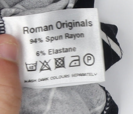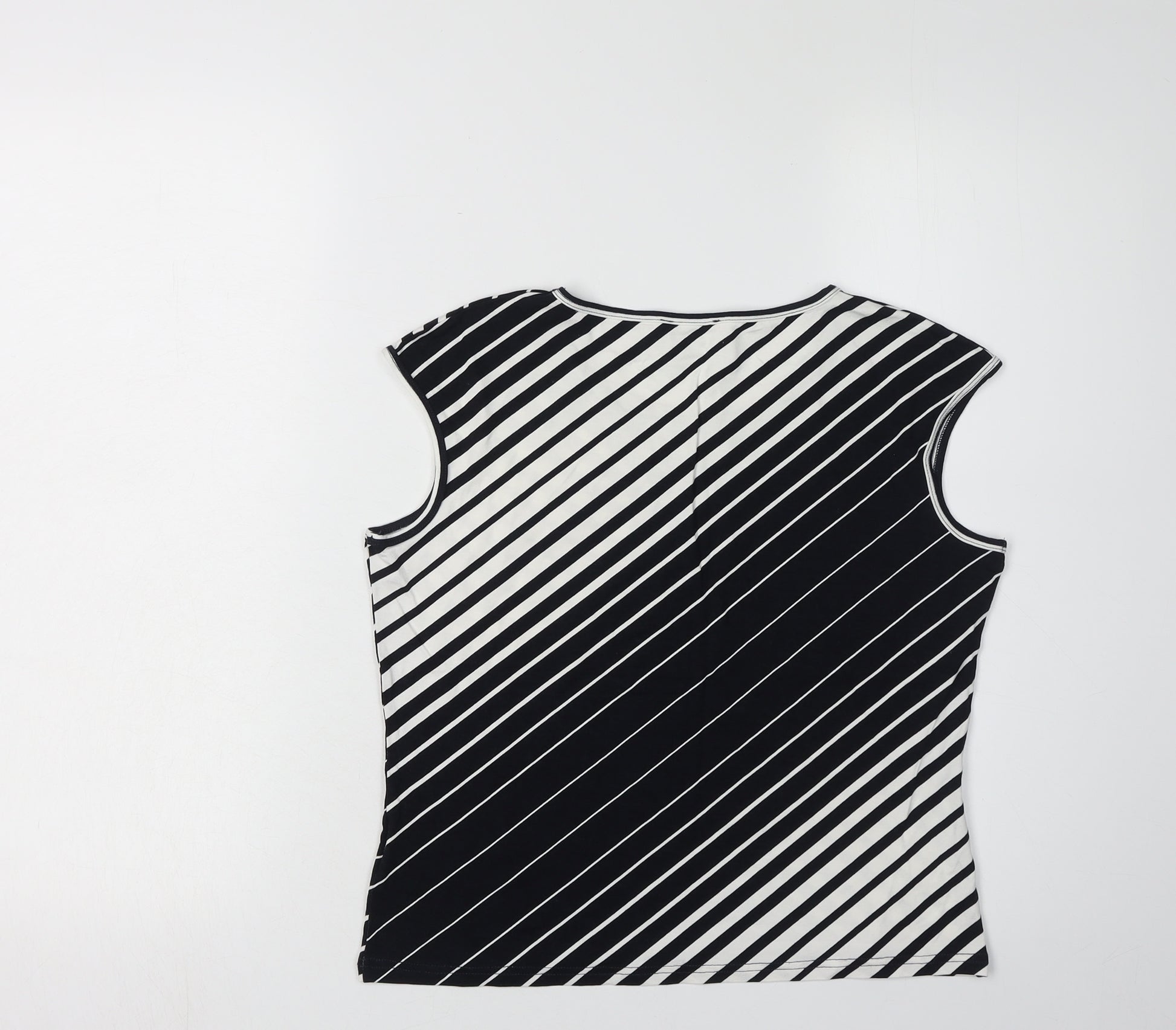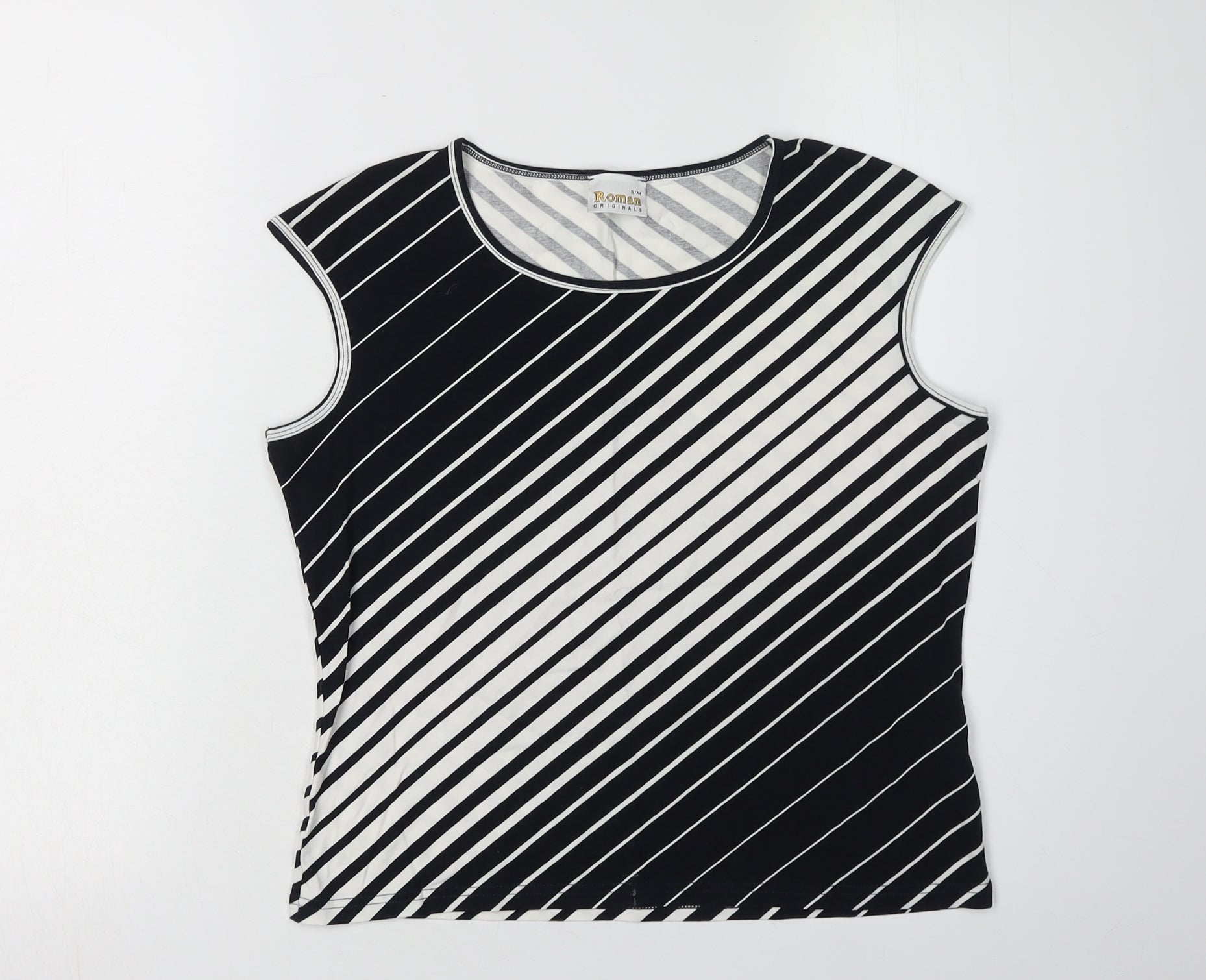 Elevate your wardrobe with this classic sleeveless striped top from Roman Originals, featuring a sophisticated black and white pattern. Designed for the fashion-forward woman, this versatile top blends comfort with style, thanks to its soft rayon and elastane blend. Perfect for casual outings or even a laid-back office look, this regular fit shirt offers a flattering silhouette that complements all body types. The round neckline adds a touch of elegance, while the pullover design ensures effortless dressing. Whether paired with jeans, trousers, or a skirt, this top promises to be a stylish staple in your collection. Ideal for casual occasions, it's machine washable for easy care. Enjoy the stretch feature for added comfort throughout your day.