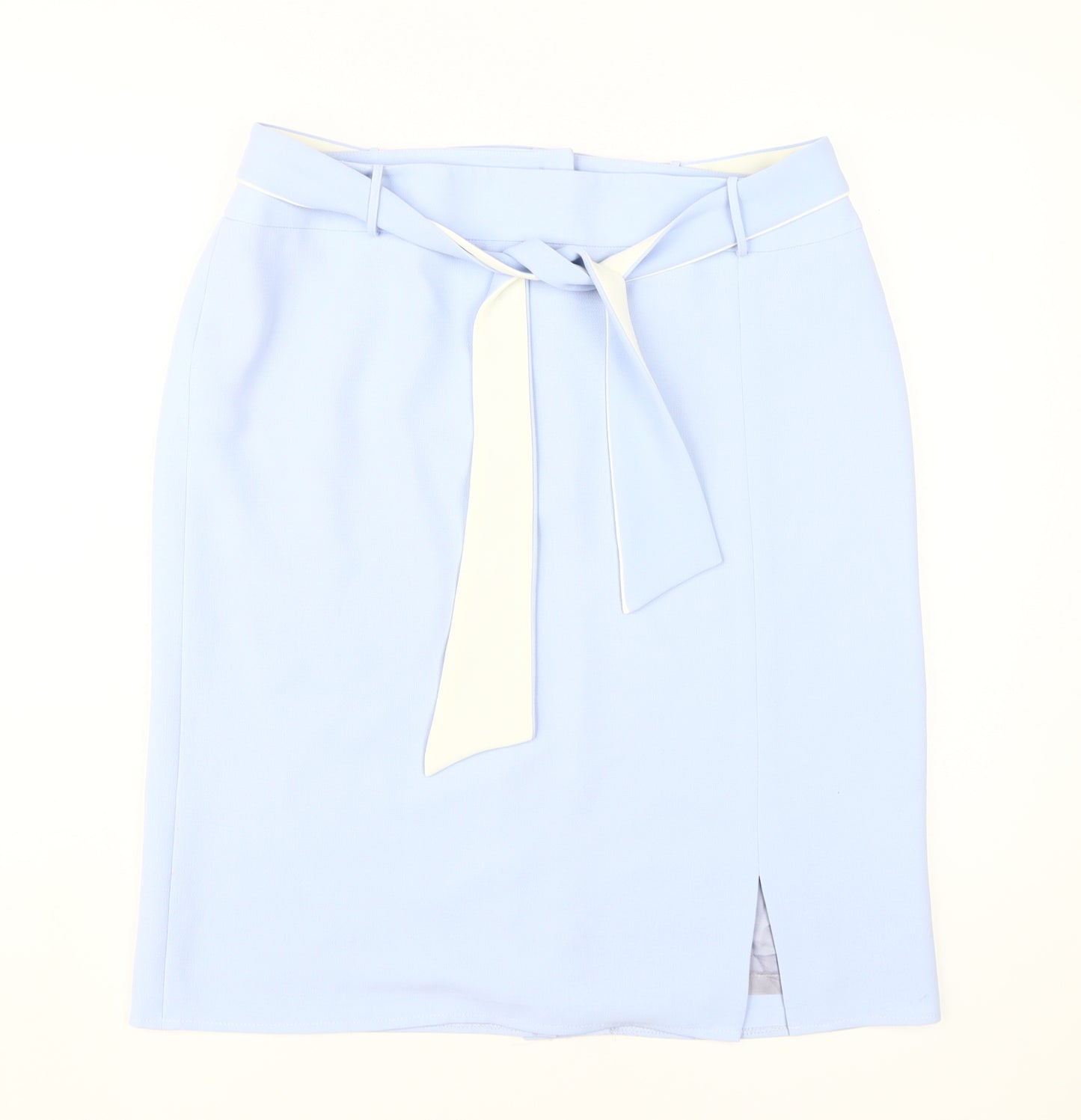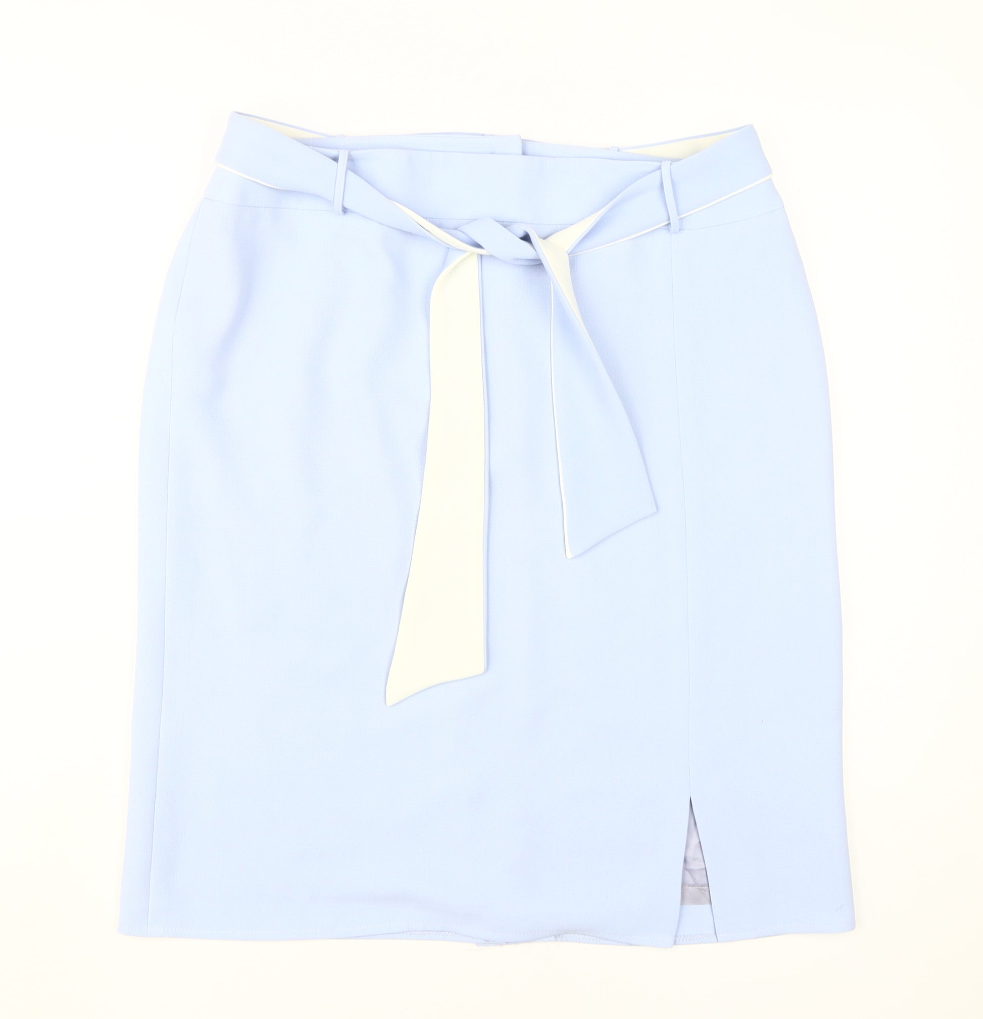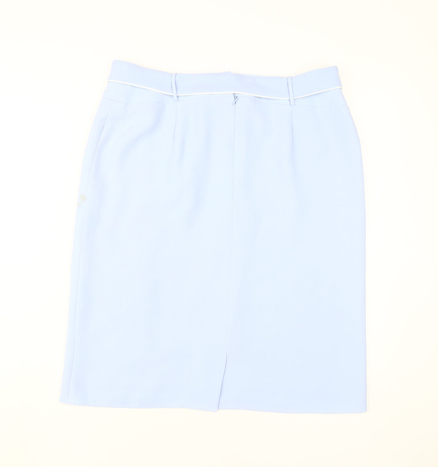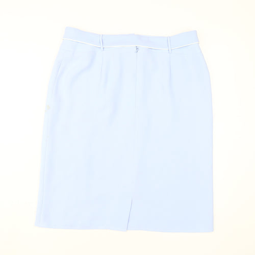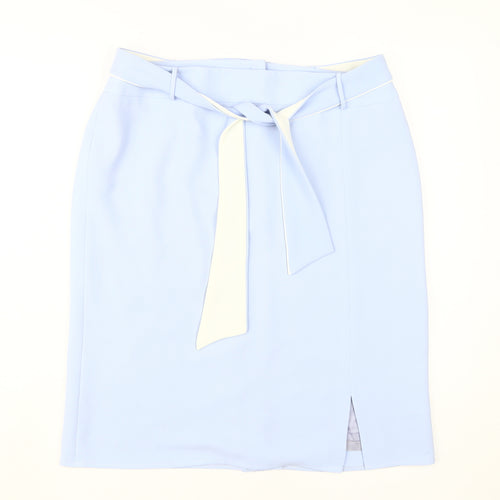 Elevate your wardrobe with this elegant Roman Originals Women's Blue Knee Length Pencil Skirt, perfect for both business and casual settings. Crafted from high-quality polyester, this straight & pencil style skirt features a sleek tie accent and a sophisticated slit, enhancing its classic knee-length silhouette. Designed in a stunning shade of blue, this skirt offers a timeless appeal and can be effortlessly paired with your favourite tops and blouses. The mid-rise waistband and zip closure ensure a comfortable fit, making it ideal for spring and summer. This versatile piece is tailored for regular size 18, providing a chic yet practical choice for professional and day-to-day wear. With an emphasis on style and functionality, this skirt promises to be a standout addition to your fashion collection.