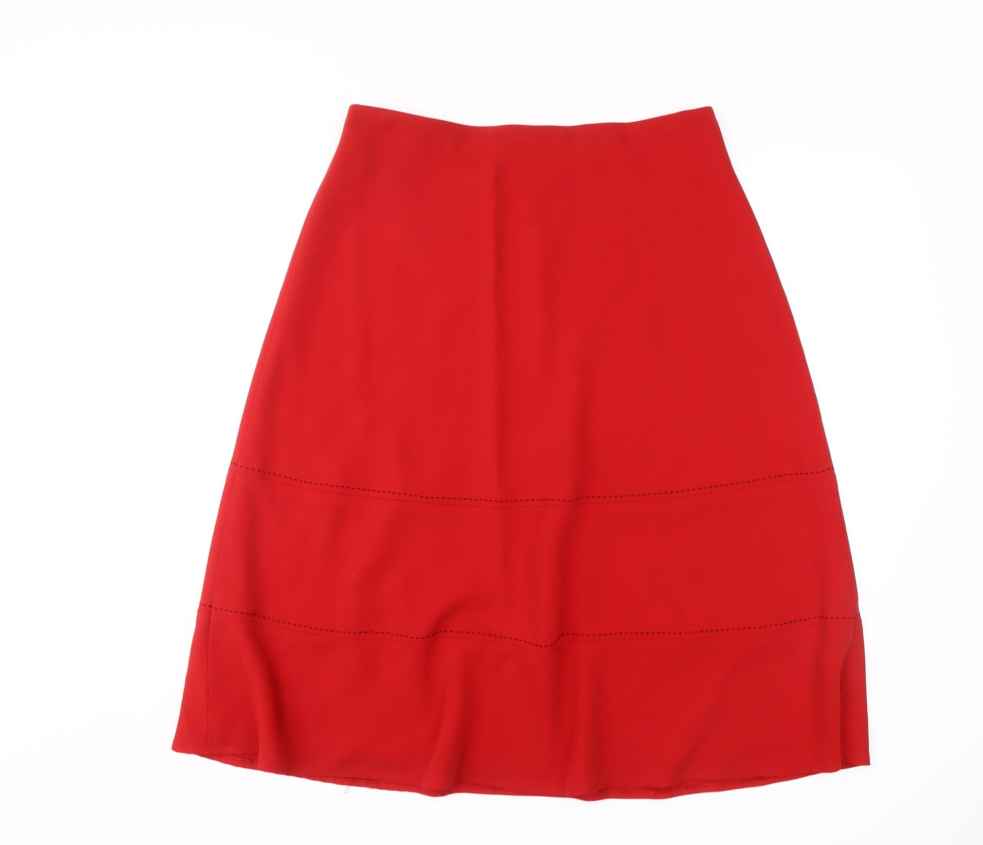 Elevate your wardrobe with this chic red A-Line skirt from Roman Originals. Perfect for adding a vibrant touch to any outfit, this skirt is crafted from 100% polyester, ensuring both comfort and style. The skirt is designed for women and is a size 14, ideal for regular sizing. Its timeless A-Line silhouette makes it versatile for various occasions, whether for casual outings or more formal events. The solid red colour ensures it will stand out, becoming a staple piece in your wardrobe. Designed without a pattern, the skirt offers a clean, classic look that pairs seamlessly with various tops and accessories. Its machine washable feature ensures easy care, making it as practical as it is stylish. In excellent condition, the skirt shows no visible wear or defects, promising durability and lasting allure. Discover the ease and elegance of this Roman Originals skirt and make a bold fashion statement today.