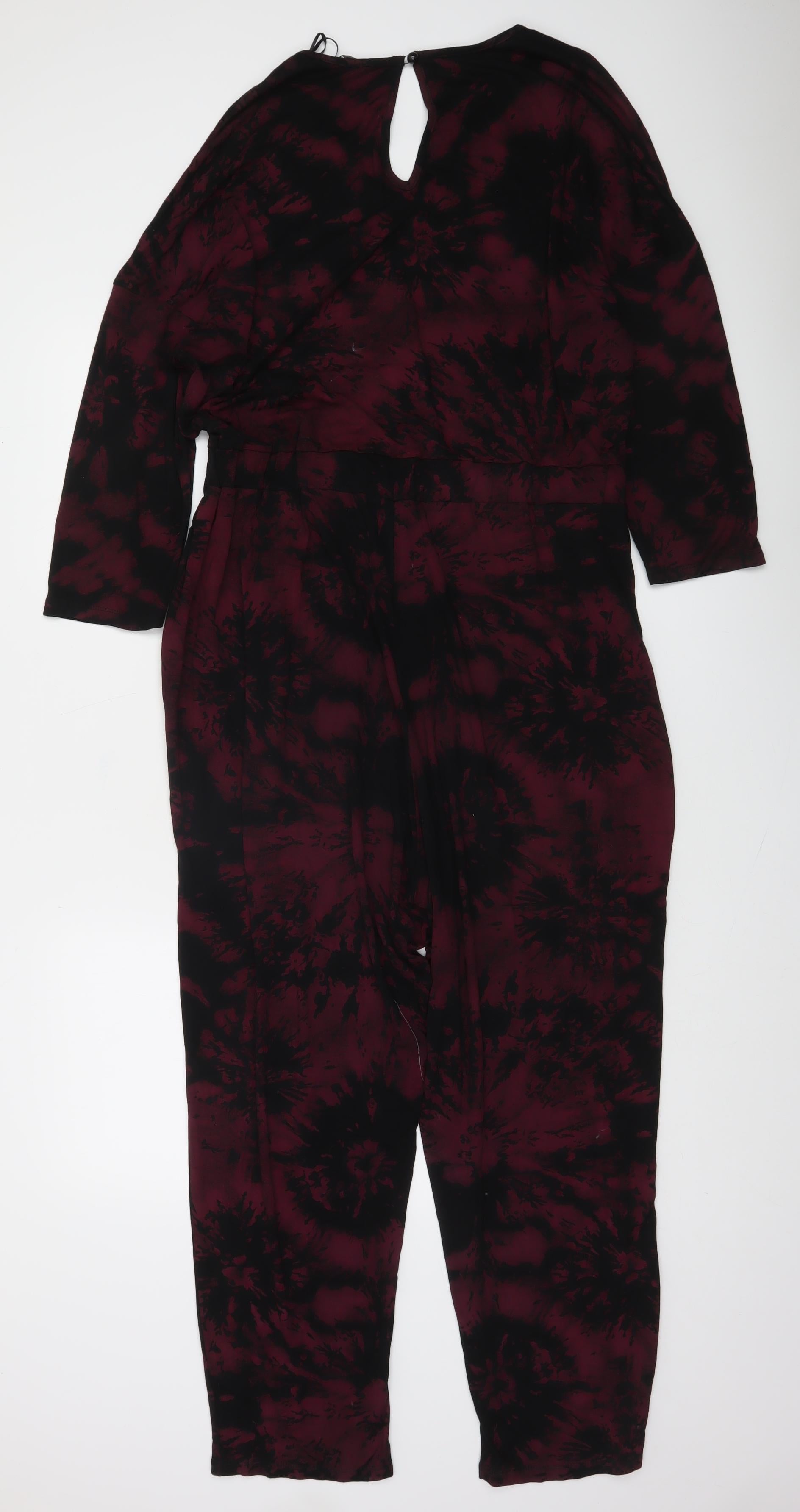 Women’s Red Black Tie Dye Jumpsuit Size 14 3/4 Sleeve Jersey Style