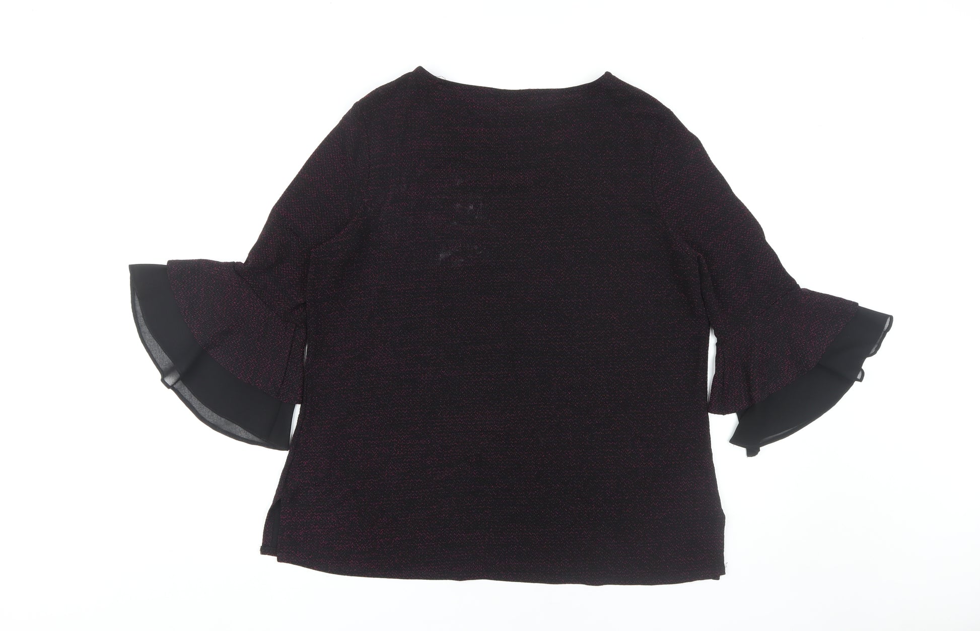 Elevate your wardrobe with this stylish Roman Women's Black Top, perfect for any casual occasion. Designed in a comfortable size 16, this top features elegant 3/4 flared sleeves that add a touch of flair to your outfit. The classic boat neckline enhances the overall chic appeal, making it a versatile addition to your collection. Crafted from high-quality materials such as polyamide, elastane, and polyester, this top offers a lightweight feel, ensuring comfort throughout the day. With its pullover design, it provides ease of wear without compromising on style. The solid black colour makes it a timeless piece that can easily be paired with a variety of bottoms. Suitable for everyday wear, this top allows you to showcase your fashion-forward sense effortlessly. Machine washable for convenience, it's not only stylish but also easy to maintain. Don't miss the opportunity to add this excellent condition piece to your wardrobe and make a statement with your fashion choices.