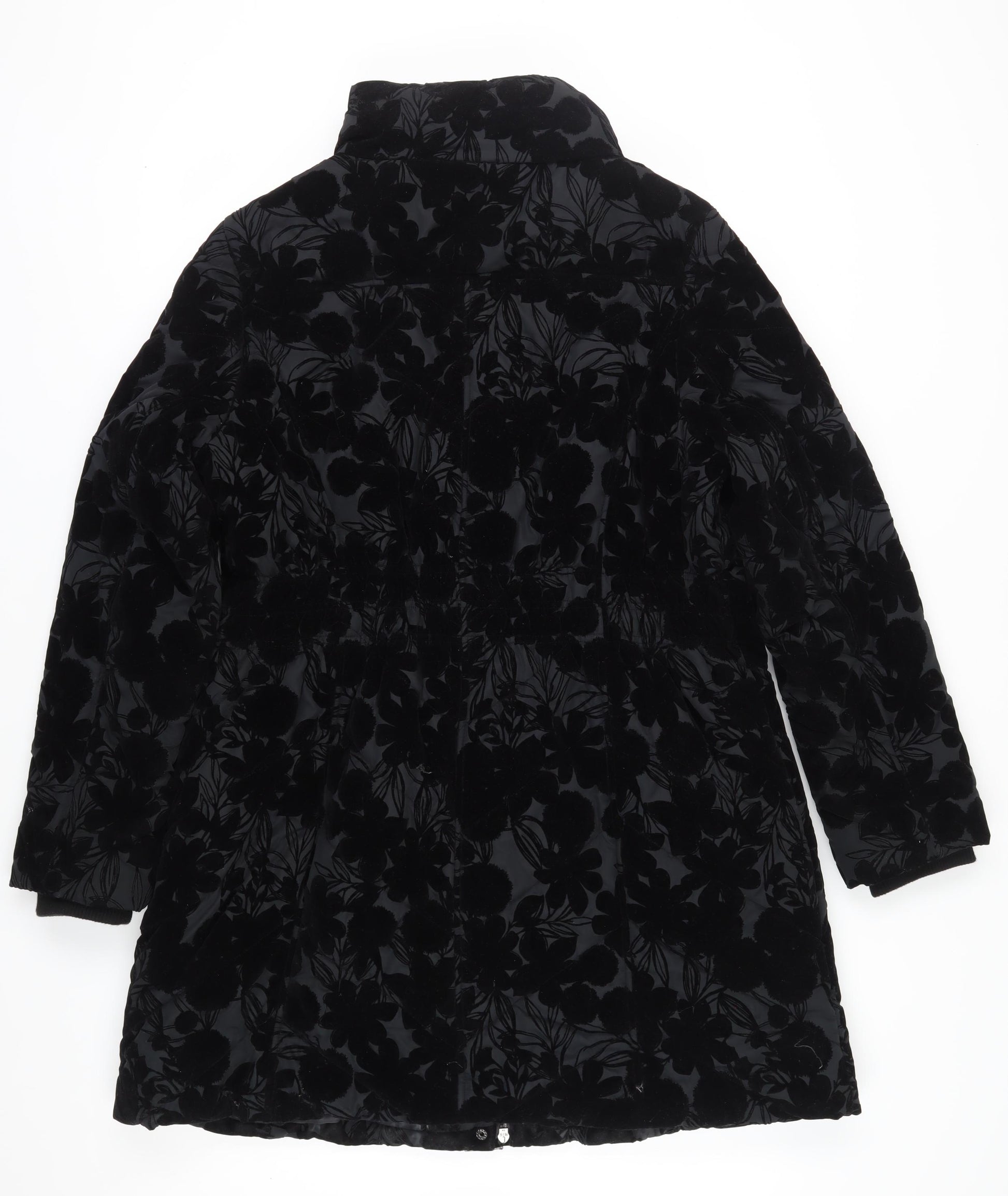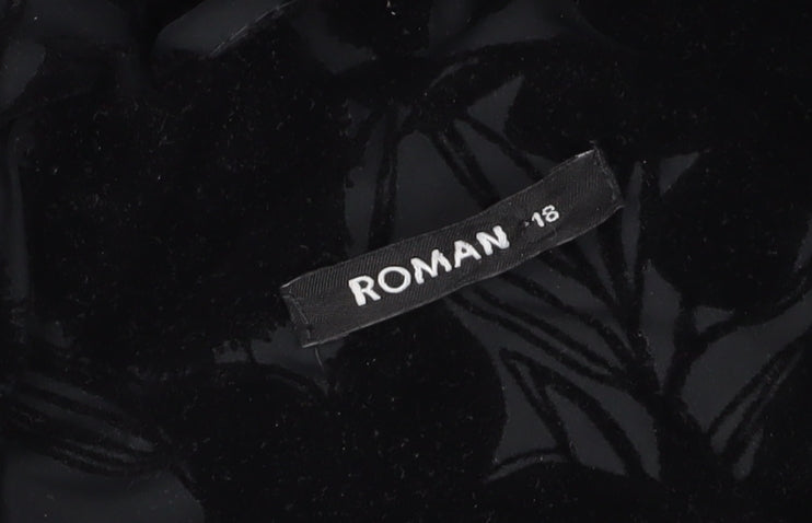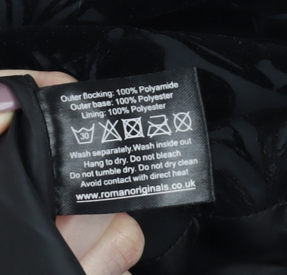 Elevate your outerwear collection with this elegant Roman Women's Black Floral Overcoat. Crafted with a luxurious blend of polyamide and polyester, this coat offers warmth and style for the cooler seasons. The striking black floral pattern adds a touch of sophistication, making it a versatile addition for both casual and chic occasions. Designed for comfort, this long-sleeve overcoat features a regular fit, suitable for any body type. The coat's long length provides extra coverage and a fashionable silhouette. Ideal for autumn and winter, it pairs beautifully with any outfit, whether you're heading to the office or enjoying a weekend stroll. The coat includes a button closure for secure fastening, while its machine washable construction ensures easy care and maintenance. This is a classic piece from the renowned Roman brand, known for quality and style. Condition is excellent, with no visible flaws, making this coat a perfect addition to your wardrobe. Don't miss the opportunity to own this timeless piece, available now at an unbeatable price.