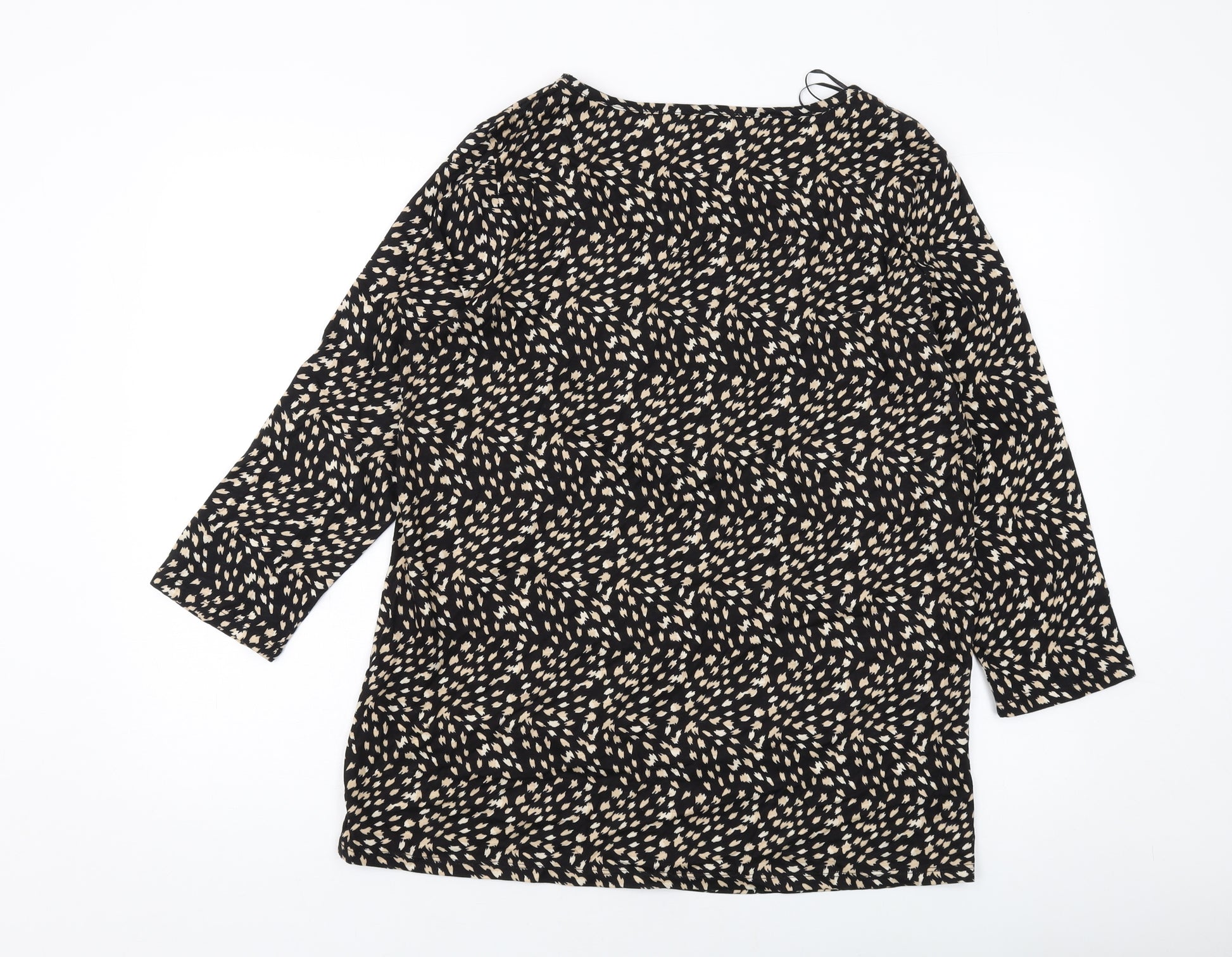 Womens Black Geometric Polyester Basic Blouse Size 14 Round Neck