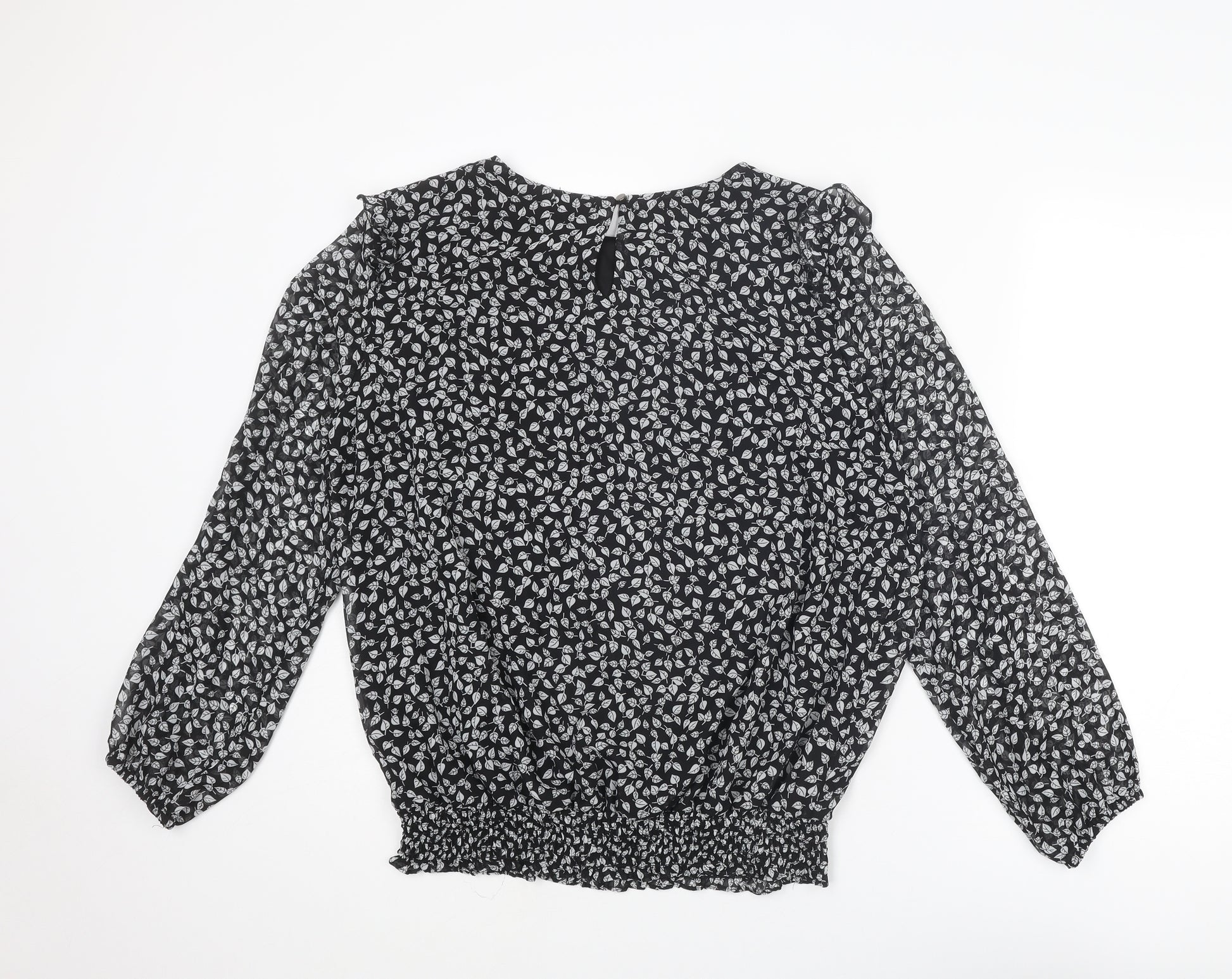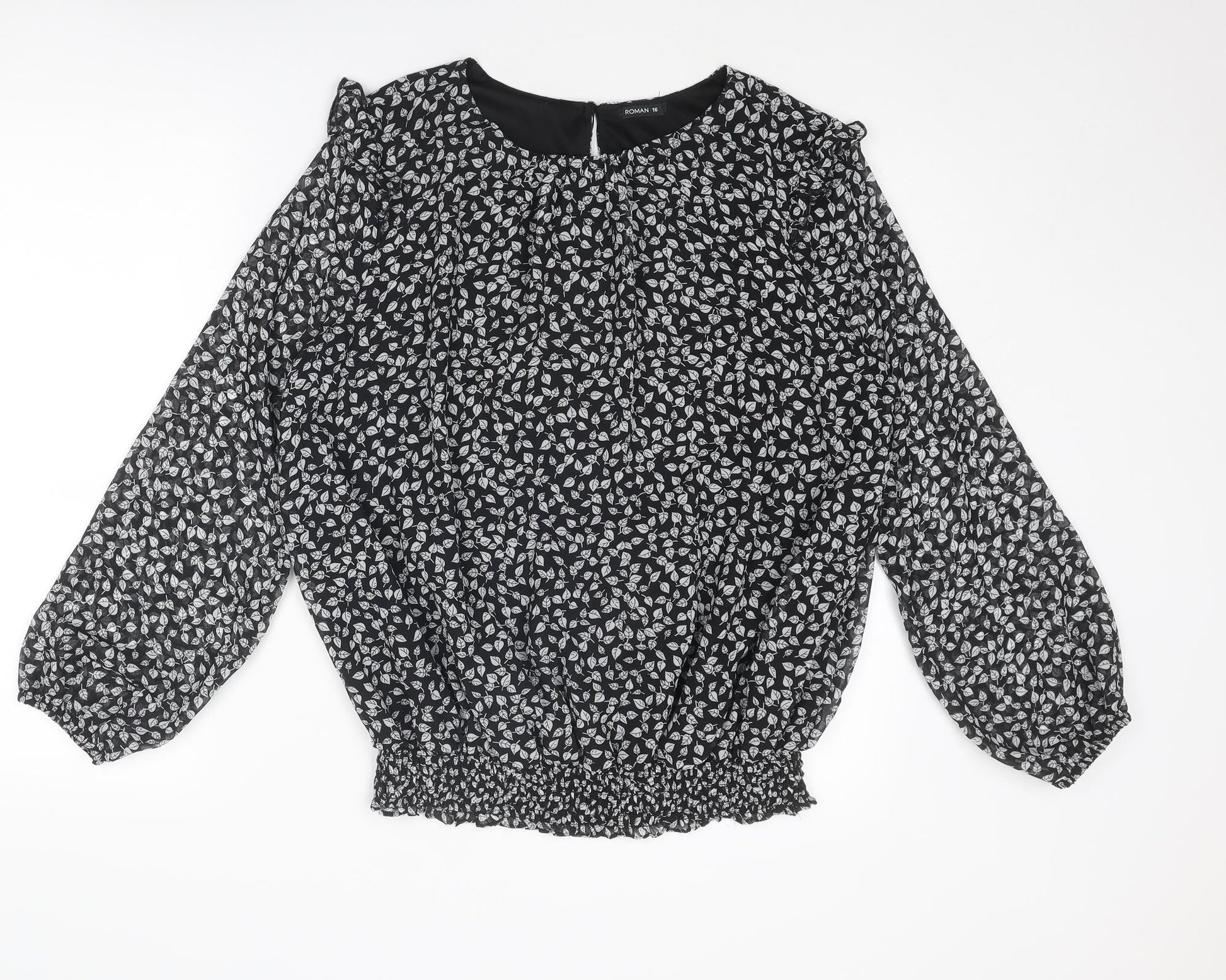 Womens Black Geometric Polyester Basic Blouse Size 16 Boat Neck