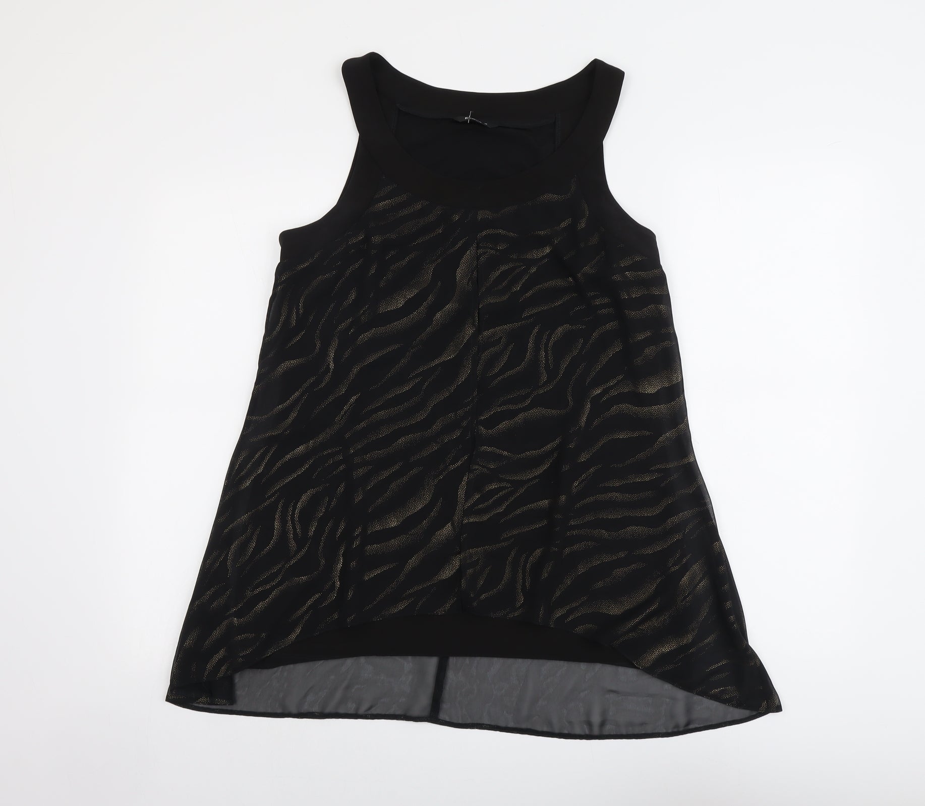 Womens Black Geometric Polyester Basic Tank Size 14 Round Neck