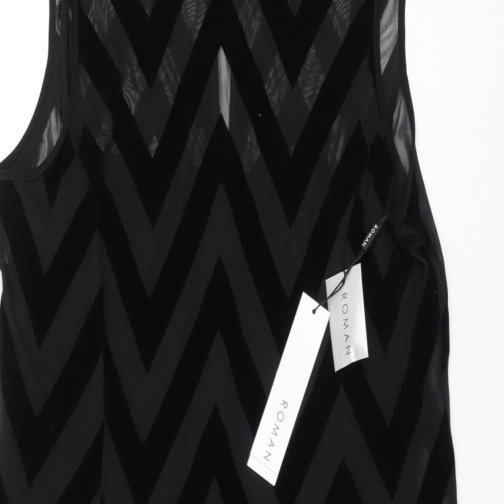 Womens Black Herringbone Polyester Shift Size 18 Round Neck Button
