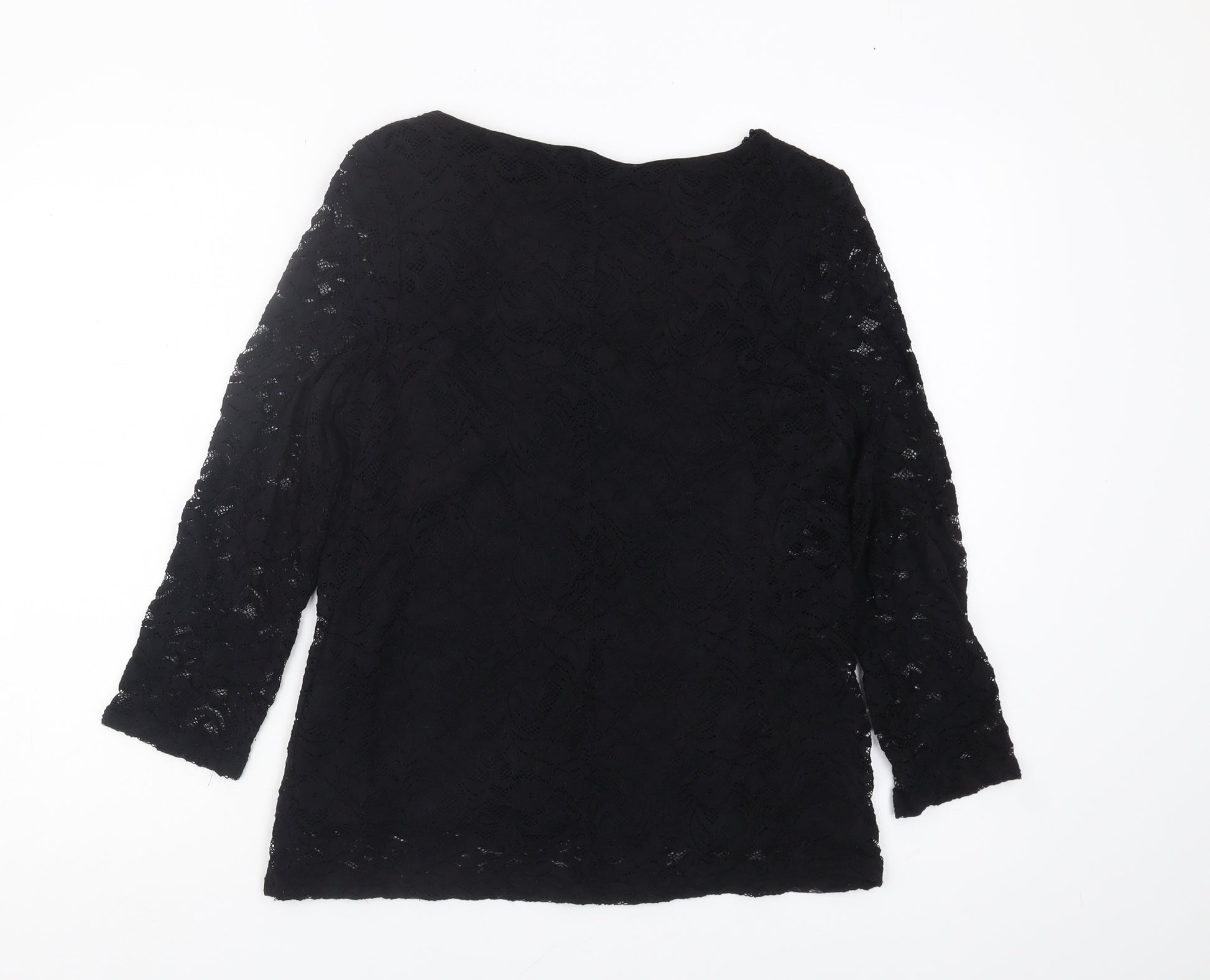 Miss Selfridge Womens Black Lace Long Sleeve Cotton Blouse Size 14