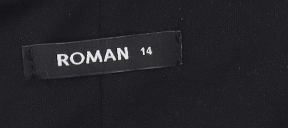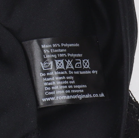Elevate your formal wardrobe with this elegant Roman Women's Black Lace Top. Crafted with 95% polyamide and 5% elastane, this top offers a comfortable and flattering fit. The exquisite beaded round neckline adds a touch of glamour to any outfit, making it perfect for special occasions and evening events. Featuring 3/4 sleeves, this top combines sophistication with modern style, ensuring you look chic no matter the occasion. Easy to care for, the garment requires hand washing to maintain its refined lace texture and delicate accents. Ideal for women seeking a timeless piece that pairs effortlessly with skirts or trousers. The solid black colour provides versatility and elegance. In excellent condition, this top shows no signs of wear, ready to grace your wardrobe at a great value.
