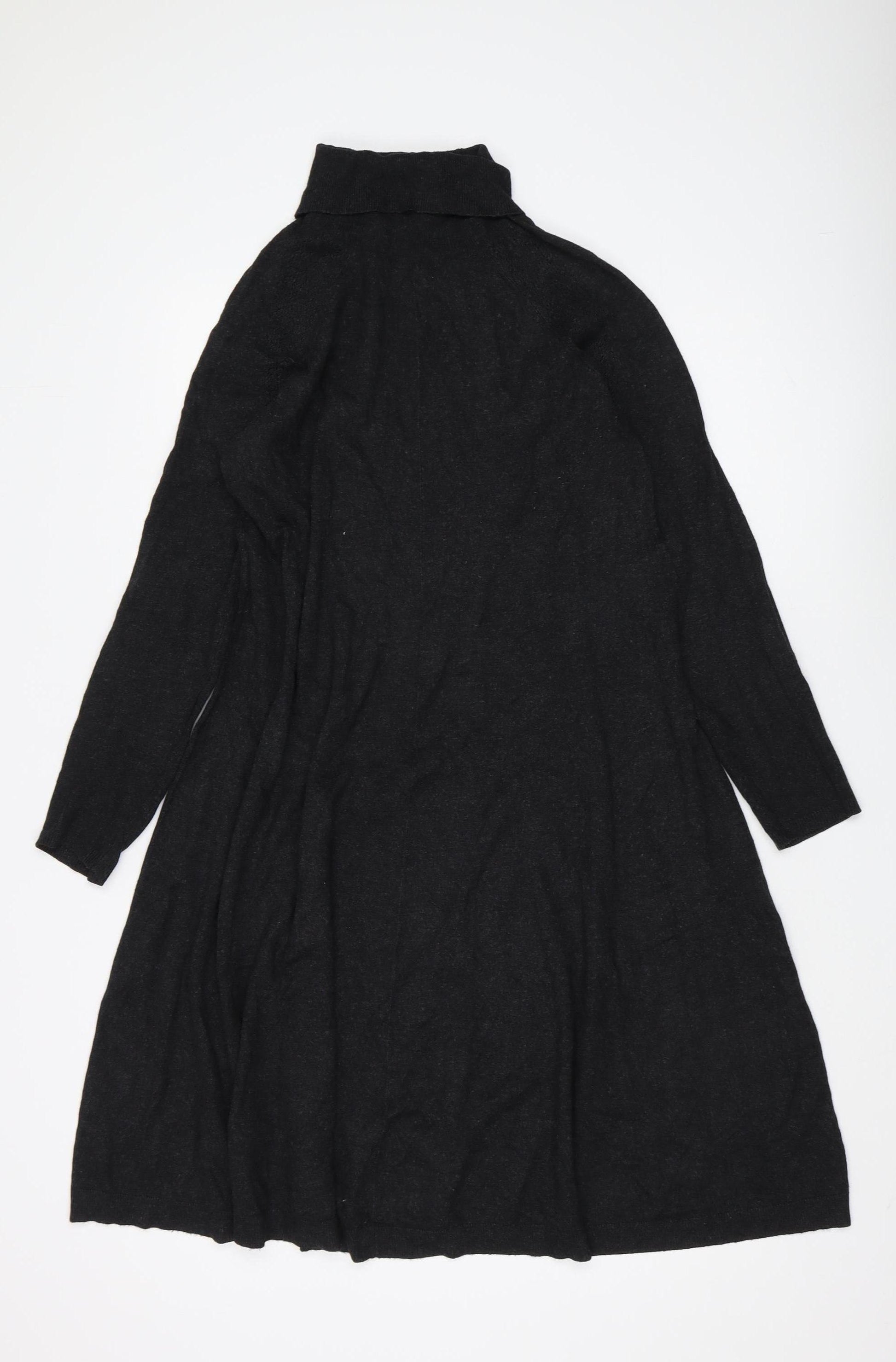 NEXT Womens Black Geometric Polyester A-Line Size 12 Round Neck Button