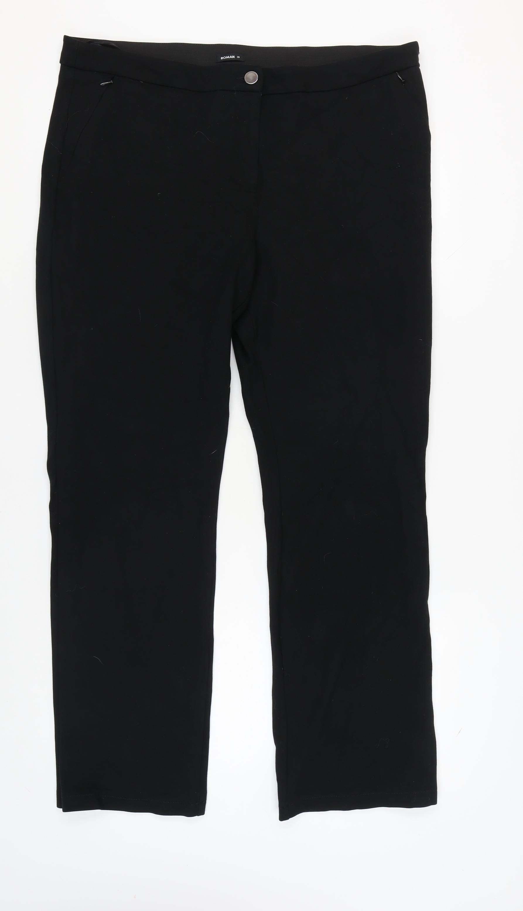 Elevate your wardrobe with these timeless Roman Women's Black Straight Trousers in size 20. Crafted from a comfortable blend of 67% Viscose, 28% Polyamide, and 5% Elastane, these trousers promise ease and flexibility for all-day wear. The classic black shade makes them a versatile addition, perfect for pairing with your favourite tops and blouses. Designed with a flat front and a simple button closure, these trousers offer a clean and sophisticated look. The regular fit and straight leg style ensure a flattering silhouette, suitable for any body type. Ideal for casual outings, workwear, or even more formal occasions, these trousers are a must-have for any woman's wardrobe. Despite being in excellent condition with no original tags, slight signs of wear are evident, adding to their charm. Easy to care for, simply machine wash these trousers as needed to keep them looking fresh and stylish. Priced attractively at £14.75, these trousers offer great value for a piece that balances comfort, style, and versatility effortlessly.