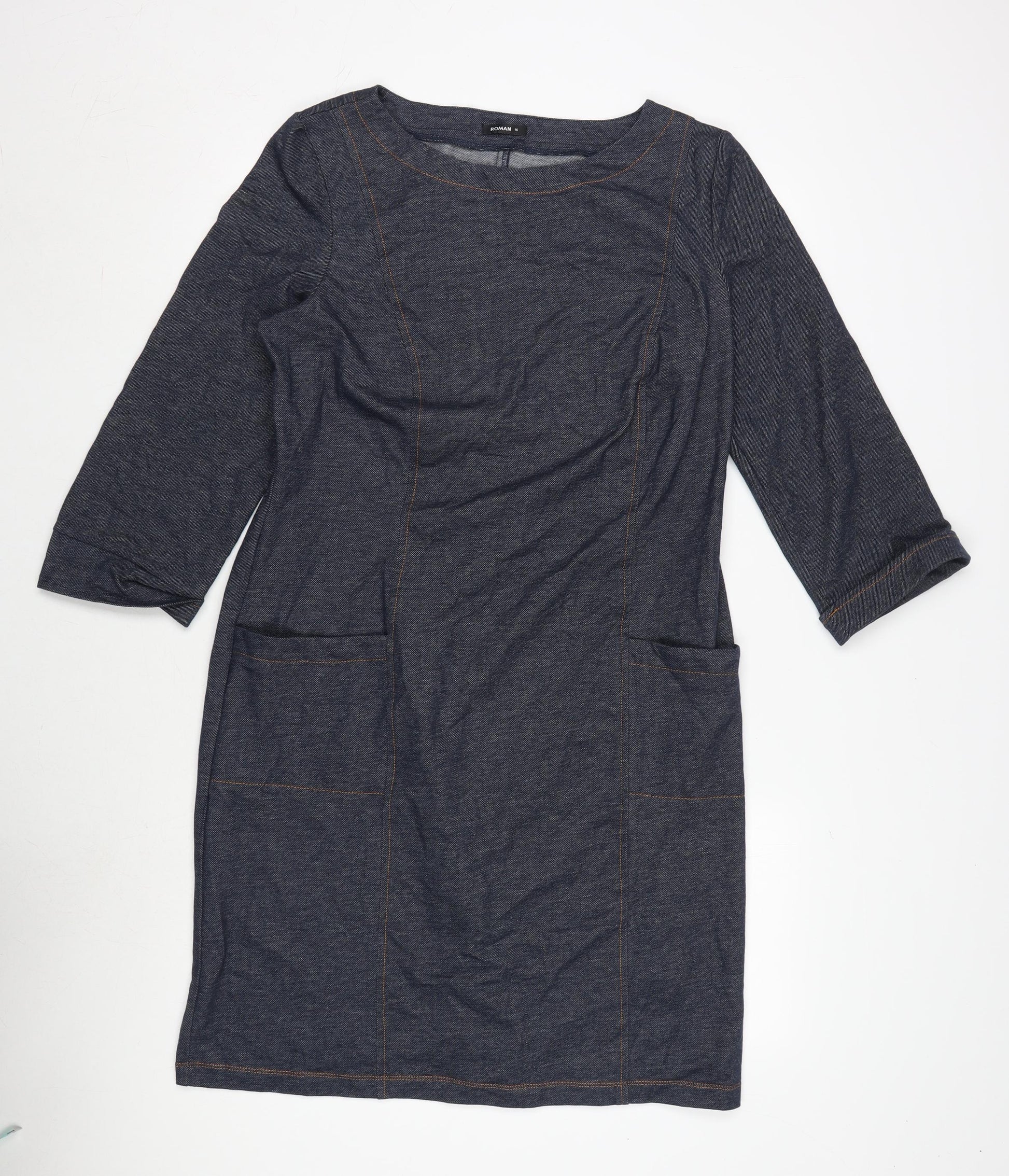 Roman Womens Blue Cotton A-Line Size 16 V-Neck Zip