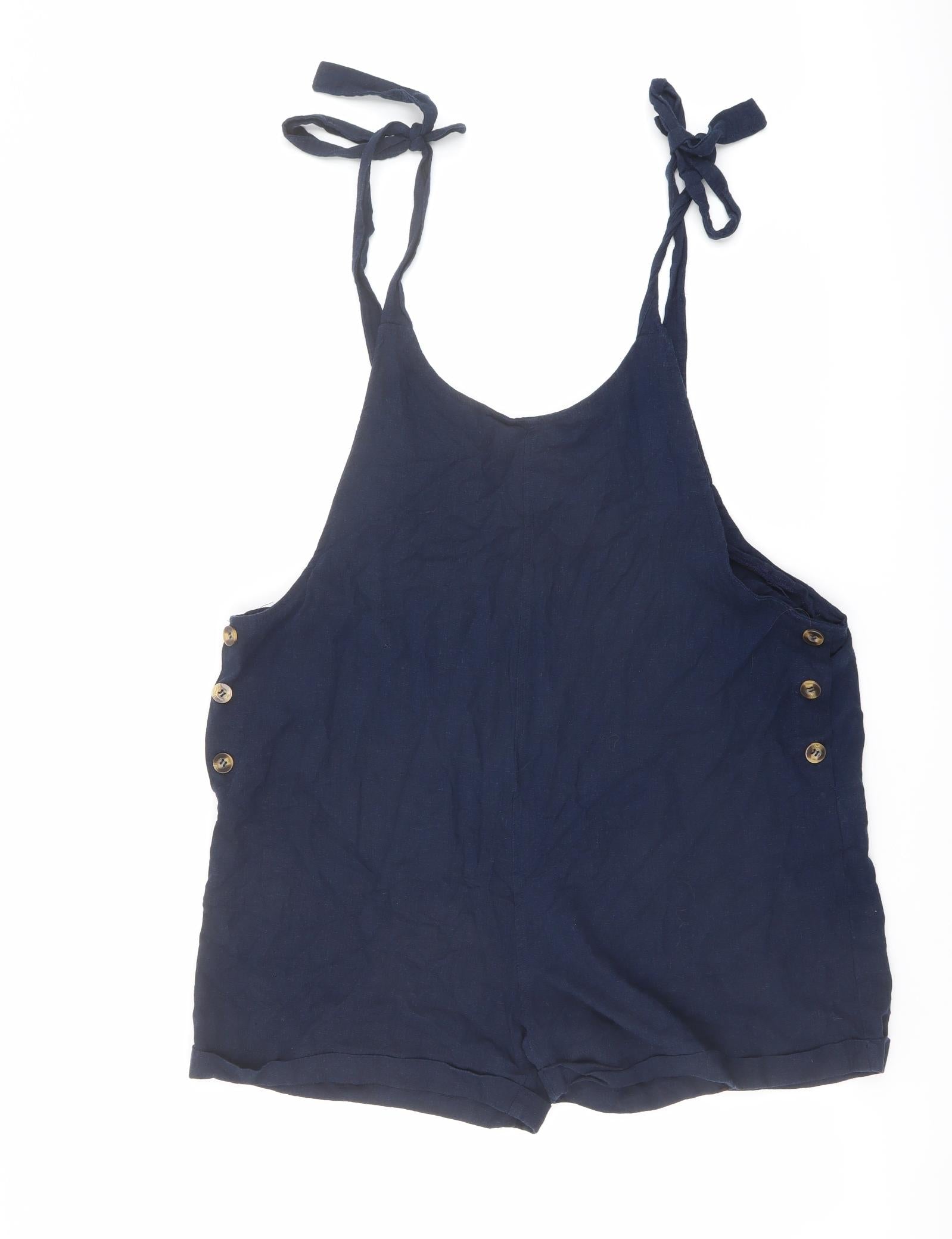 Womens Blue Cotton Playsuit One-Piece Size 14 Pullover