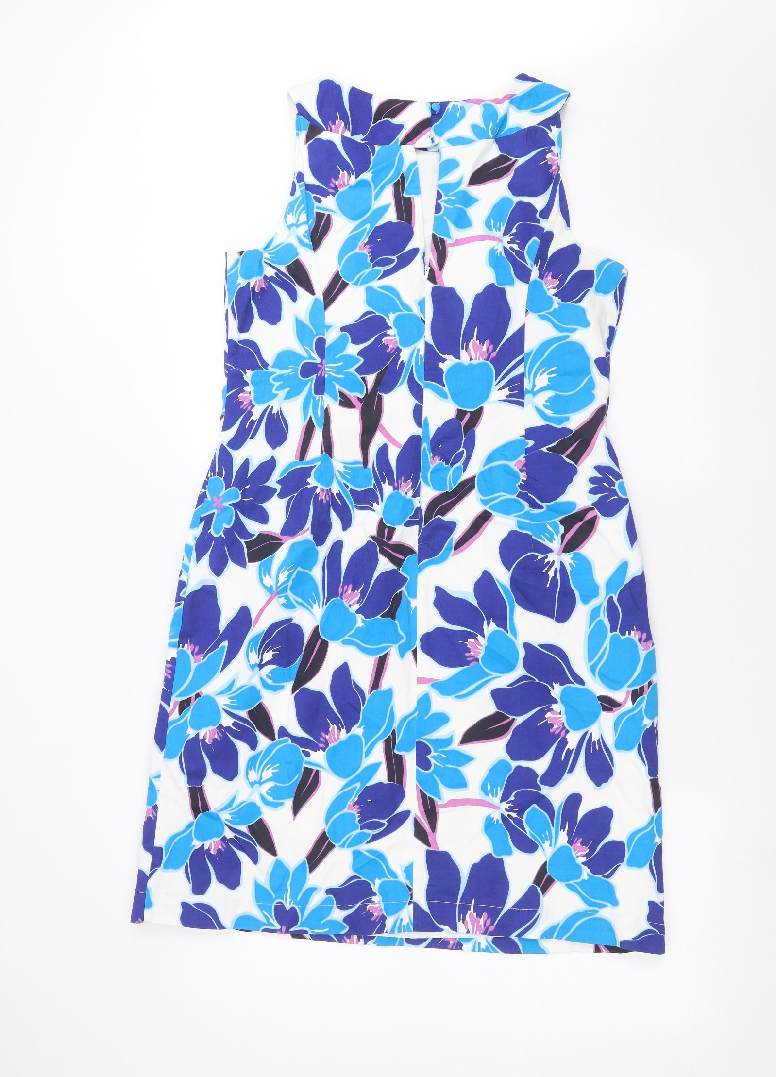 Womens Blue Floral Shift Size 14 - beaded neck line