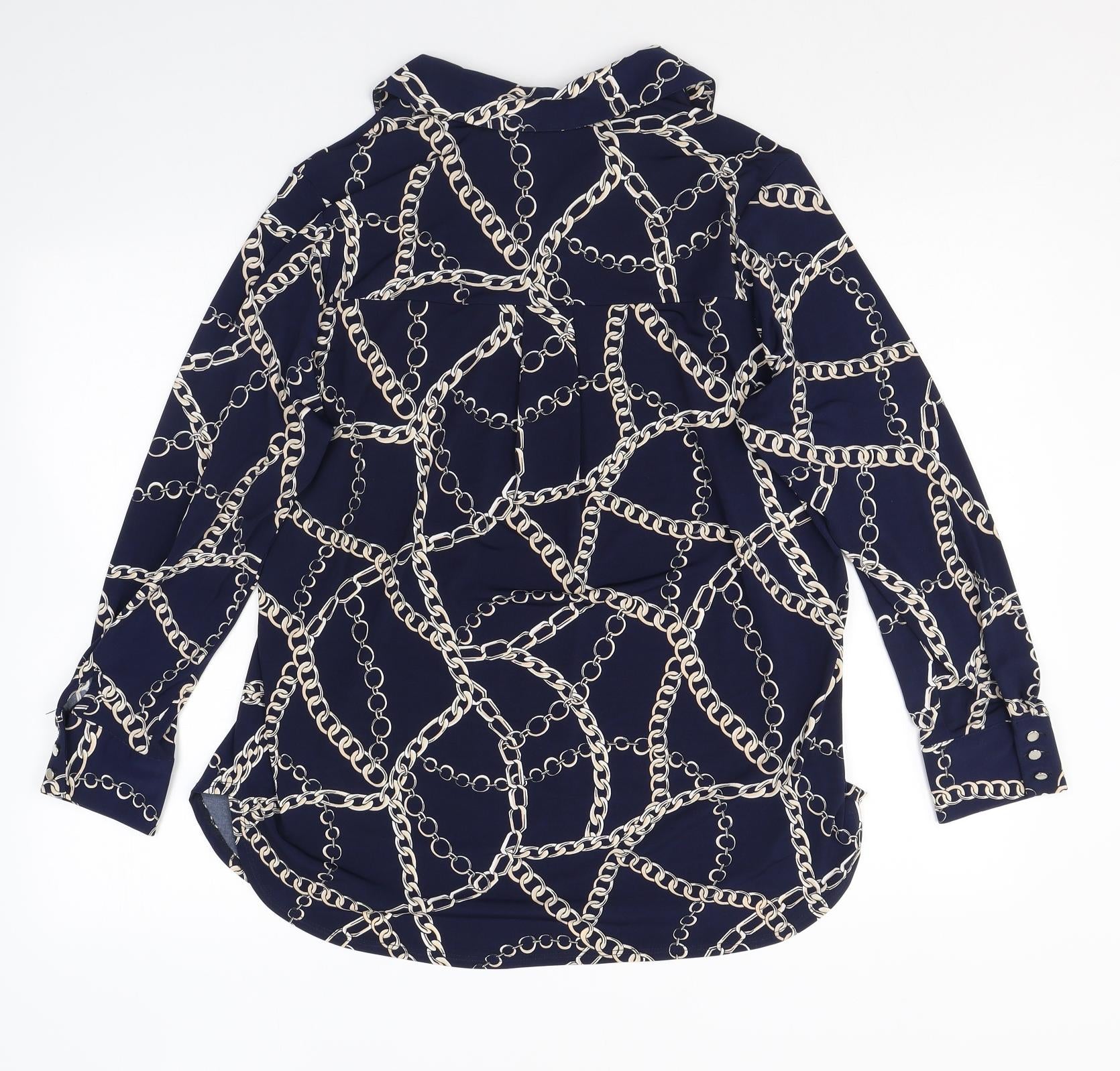 Womens Blue Geometric Polyester Basic Blouse Size 14 Collared